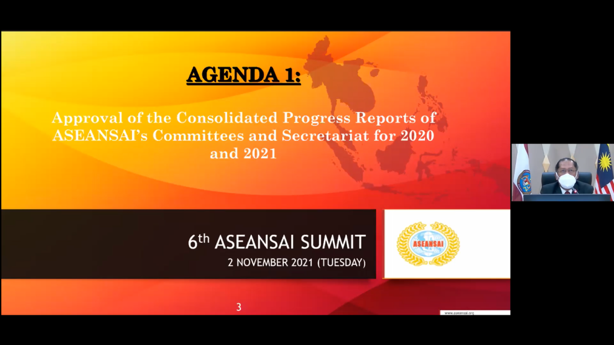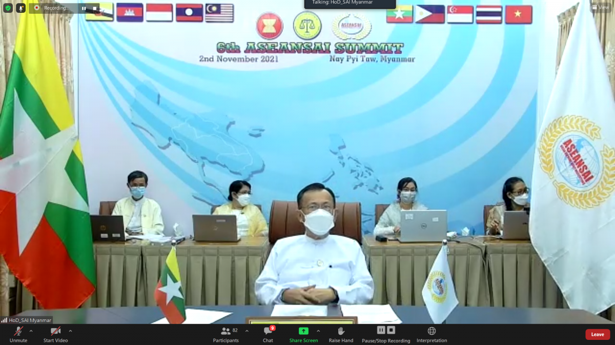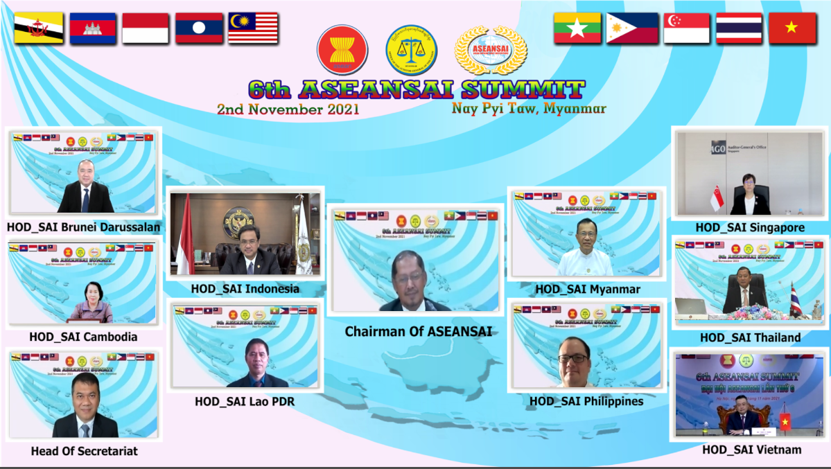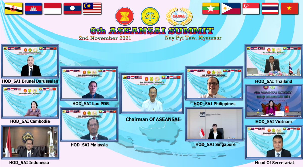 ၂-၁၁-၂၀၂၁ ရက်နေ့တွင် အရှေ့တောင်အာရှနိုင်ငံများဆိုင်ရာ စာရင်းစစ်ချုပ်ရုံးများအဖွဲ့၏ (၆) ကြိမ်မြောက် ထိပ်သီးအစည်းအဝေးကျင်းပခြင်း