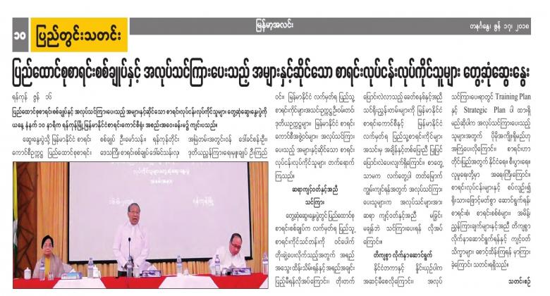 ပြည်ထောင်စုစာရင်းစစ်ချုပ်နှင့် အလုပ်သင်ကြားပေးသည့် အများနှင့်ဆိုင်သော စာရင်းလုပ်ငန်းလုပ်ကိုင်သူများ တွေ့ဆုံဆွေးနွေးပွဲ ကျင်းပ