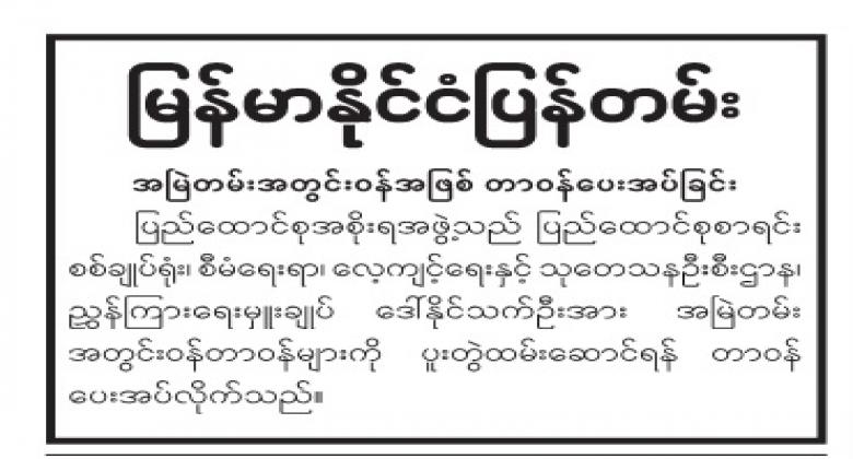 အမြဲတမ်းအတွင်းဝန် / ညွှန်ကြားရေးမှူးချုပ် (စီမံရေးရာဦးစီးဌာန/ နည်းပညာဖွံ့ဖြိုးရေးနှင့် လေ့ကျင့်ရေးဦးစီးဌာန)