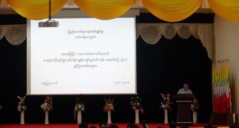 ၁။ ၂၀၁၈ ခုနှစ်၊ သြဂုတ်လ ( ၁၄ ) ရက်နေ့ နံနက်(၁၀း၀၀ )နာရီ၌ ပြည်ထောင်စုစာရင်းစစ်ချုပ်ရုံး၊ စုပေါင်းခန်းမတွင် အဆင့်မြင့် / အလယ်အလတ်အဆင့် စာရင်းကိုင်နှင့် ရုံးလုပ်ငန်းကျွမ်းကျင်မှု သင်တန်း အမှတ်စဉ် ( ၉၈ ) သင်တန်းဖွင့်ပွဲ အခမ်းအနား ကျင်းပခဲ့ရာ ပြည်ထောင်စုစာရင်းစစ်ချုပ် တက်ရောက်၍ သင်တန်းဖွင့် လမ်းညွှန် အမှာစကားပြောကြားခဲ့ပါသည်။