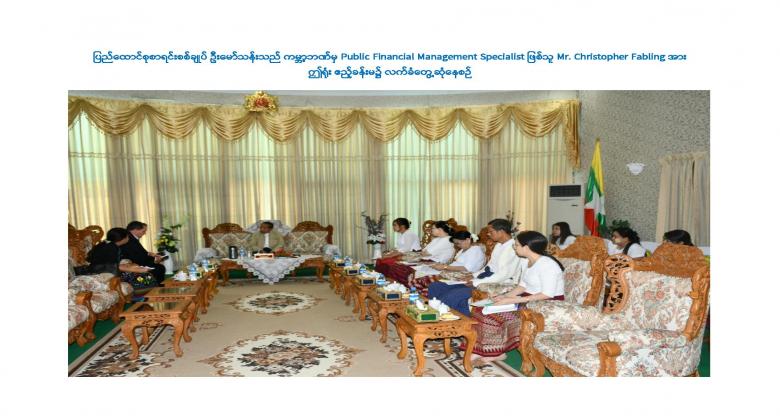 ပြည်ထောင်စုစာရင်းစစ်ချုပ် ဉီးမော်သန်းသည် ကမ္ဘာ့ဘဏ်မှ Public Financial Management Specialist ဖြစ်သူ Mr. Christopher Fabling ဦးဆောင်သော ကိုယ်စားလှယ်အဖွဲ့အား ၂၀၁၉ ခုနှစ်၊ မေလ ၂၈ ရက်နေ့၊ နံနက် ၉:၃၀ နာရီတွင် နေပြည်တော်ရှိ ပြည်ထောင်စုစာရင်းစစ်ချုပ်ရုံး၊ ဧည့်ခန်းမ၌ လက်ခံတွေ့ဆုံခဲ့ပါသည်။