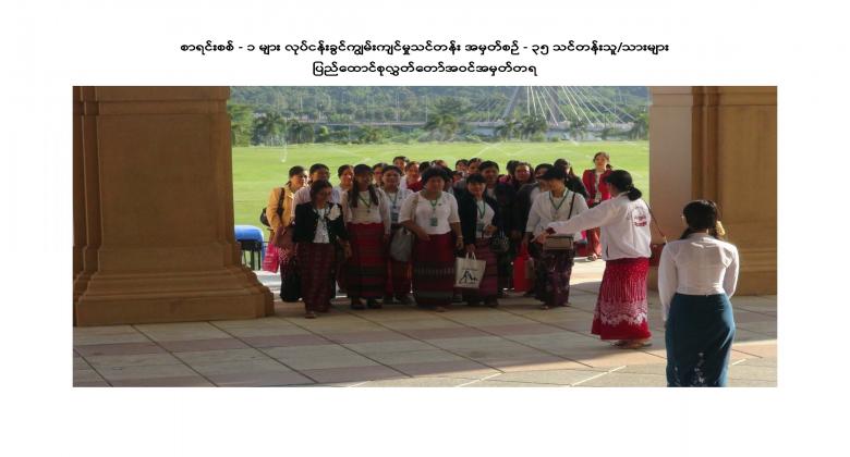 စာရင်းစစ် - ၁ များလုပ်ငန်းခွင်ကျွမ်းကျင်မှုသင်တန်း အမှတ်စဉ် - ၃၅ သင်တန်းသူ/သားများ လွှတ်တော်လေ့လာရေးခရီးအစီအစဉ်