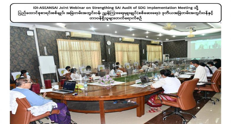 ကုလသမဂ္ဂ၏ SDG အကောင်အထည်ဖော်မှုဆိုင်ရာ Performance Audit ကို မဆောင်ရွက်မီ Heads of SAIs နှင့် Senior Officials များအကြား IDI SDGs Audit Model (ISAM) awareness ဖြစ်စေရန် ရည်ရွယ်၍ IDI-ASEANSAI Joint Webinar on Strengthening SAI Audit of SDG Implementation ကို SAI Malaysia က ဦးဆောင်၍ အဖွဲ့ဝင်နိုင်ငံအသီးသီးမှ ကိုယ်စားလှယ်များဖြင့်   ၉-၉-၂၀၂၀ ရက်နေ့၊ နေ့လယ် ၁:၃၀ နာရီတွင် Blackboard platform ဖြင့် ကျင်းပပြုလုပ်ခဲ့ပါသည်။