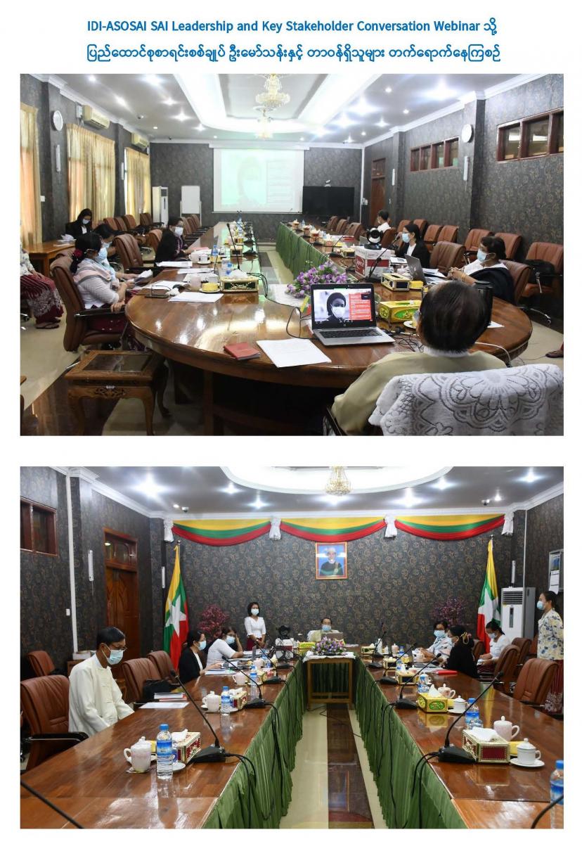 INTOSAI Development Initiative-IDI နှင့် အာရှတိုက်ဆိုင်ရာ စာရင်းစစ်ချုပ်ရုံးများအဖွဲ့ (ASOSAI) တို့ ပူးပေါင်း၍ ၇-၁၂-၂၀၂၀ ရက်နေ့၊ နေ့လယ် ၁၂:၃၀ တွင် IDI-ASOSAI SAI Leadership and Key Stakeholder Conversation Webinar ကို ကျင်းပခဲ့ပြီး ယင်း webinar သို့ ASOSAI ခေါင်းဆောင်ပိုင်းမှ ပုဂ္ဂိုလ်များနှင့် stakeholder များ တက်ရောက်ခဲ့ကြပါသည်။