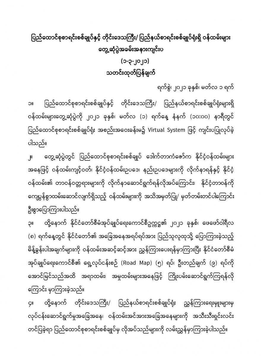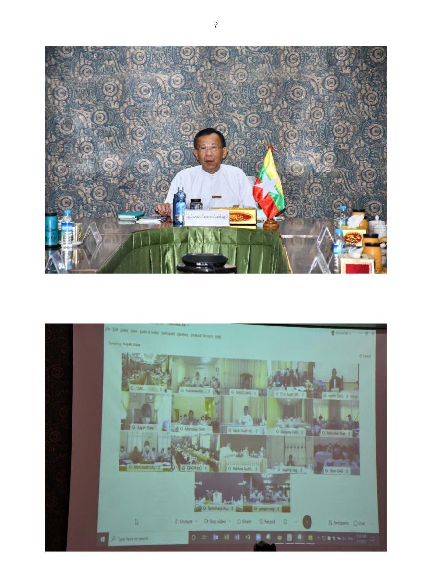 ၁-၃-၂၀၂၁ ရက်နေ့တွင် ပြည်ထောင်စုစာရင်းစစ်ချုပ်နှင့် တိုင်းဒေသကြီး/ ပြည်နယ်စာရင်းစစ်ချုပ်ရုံးများရှိ ဝန်ထမ်းများတွေ့ဆုံပွဲကို Virtual System ဖြင့်ကျင်းပခြင်း