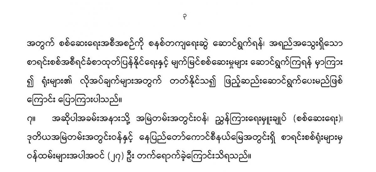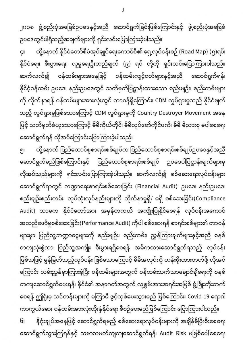 ၇-၄-၂၀၂၁ ရက်နေ့တွင် ပြည်ထောင်စုစာရင်းစစ်ချုပ် ဒေါက်တာကံဇော်နှင့် နေပြည်တော်ကောင်စီနယ်မြေအတွင်းရှိ စာရင်းစစ်ရုံးများမှဝန်ထမ်းများနှင့် တွေ့ဆုံပွဲကျင်းပခြင်း