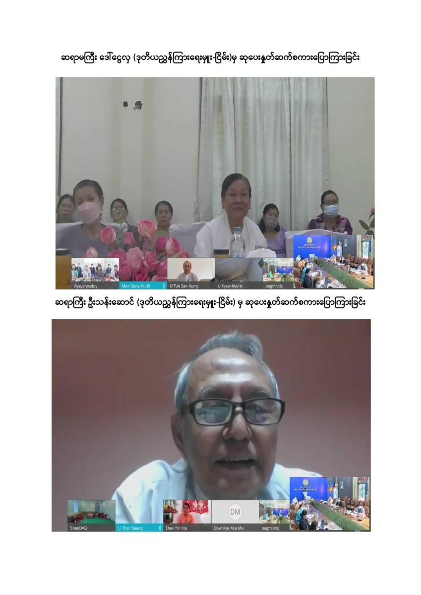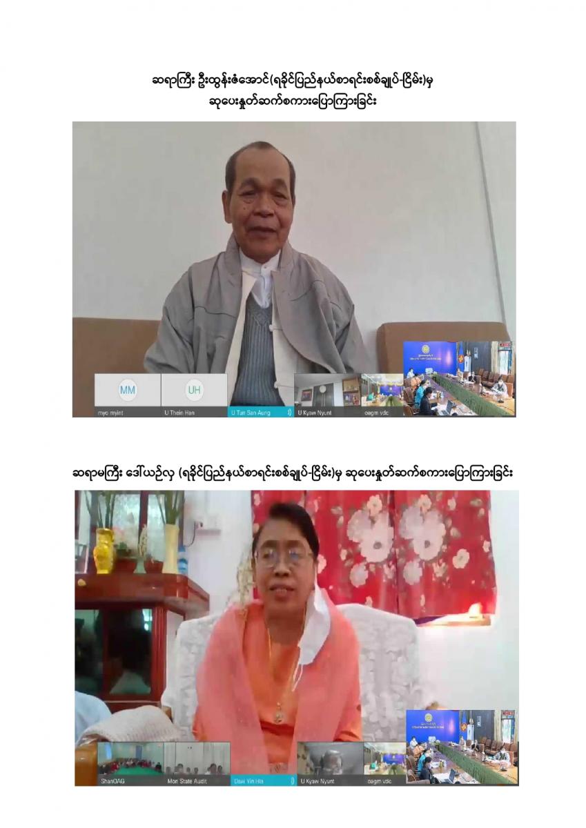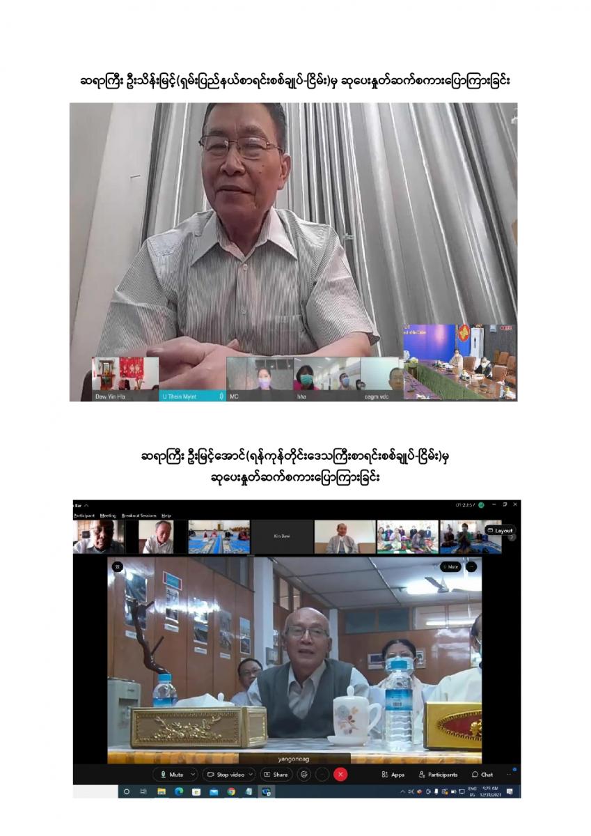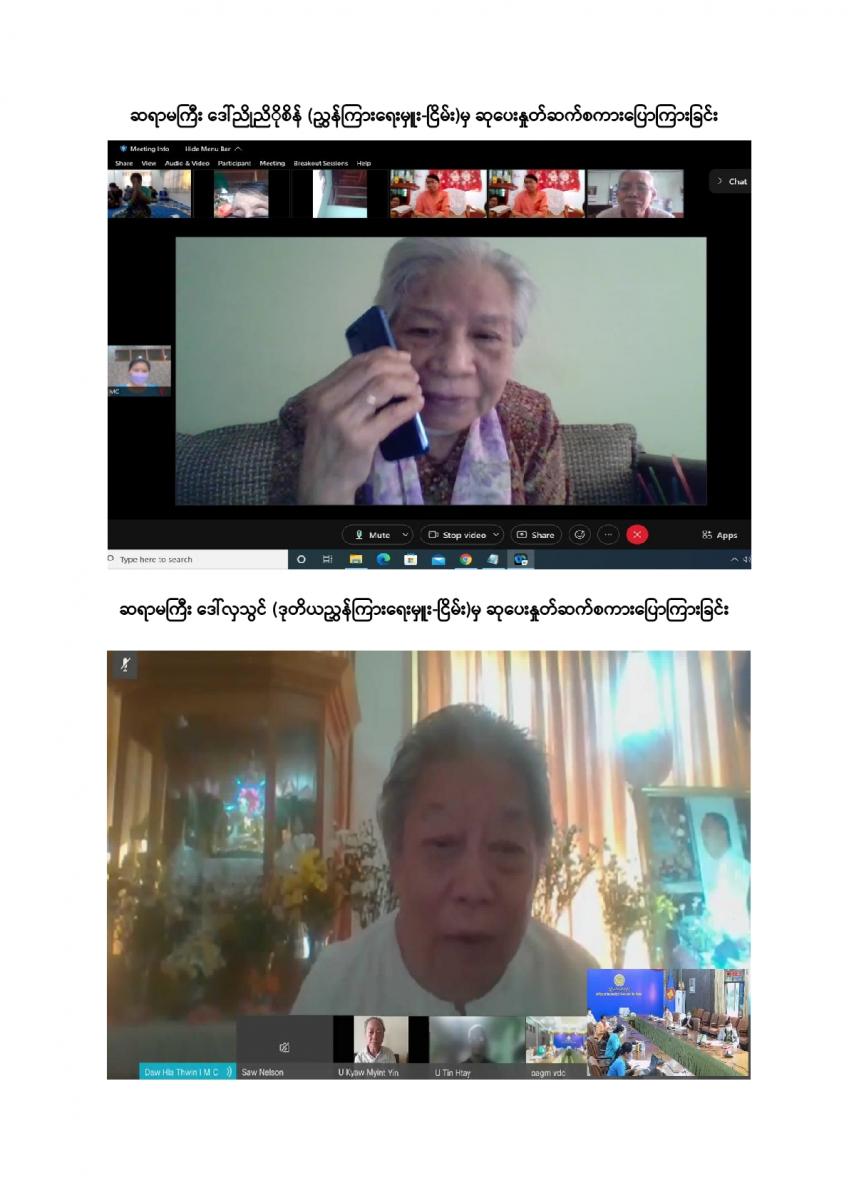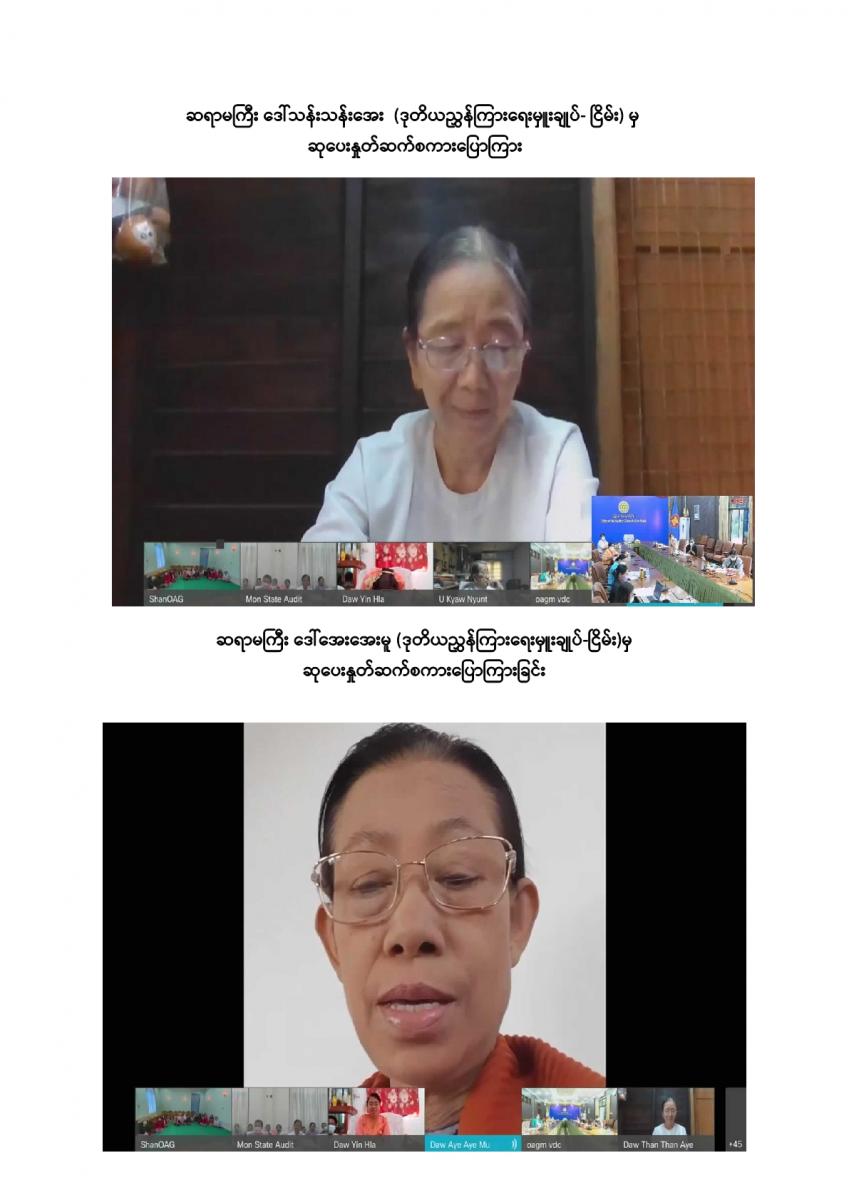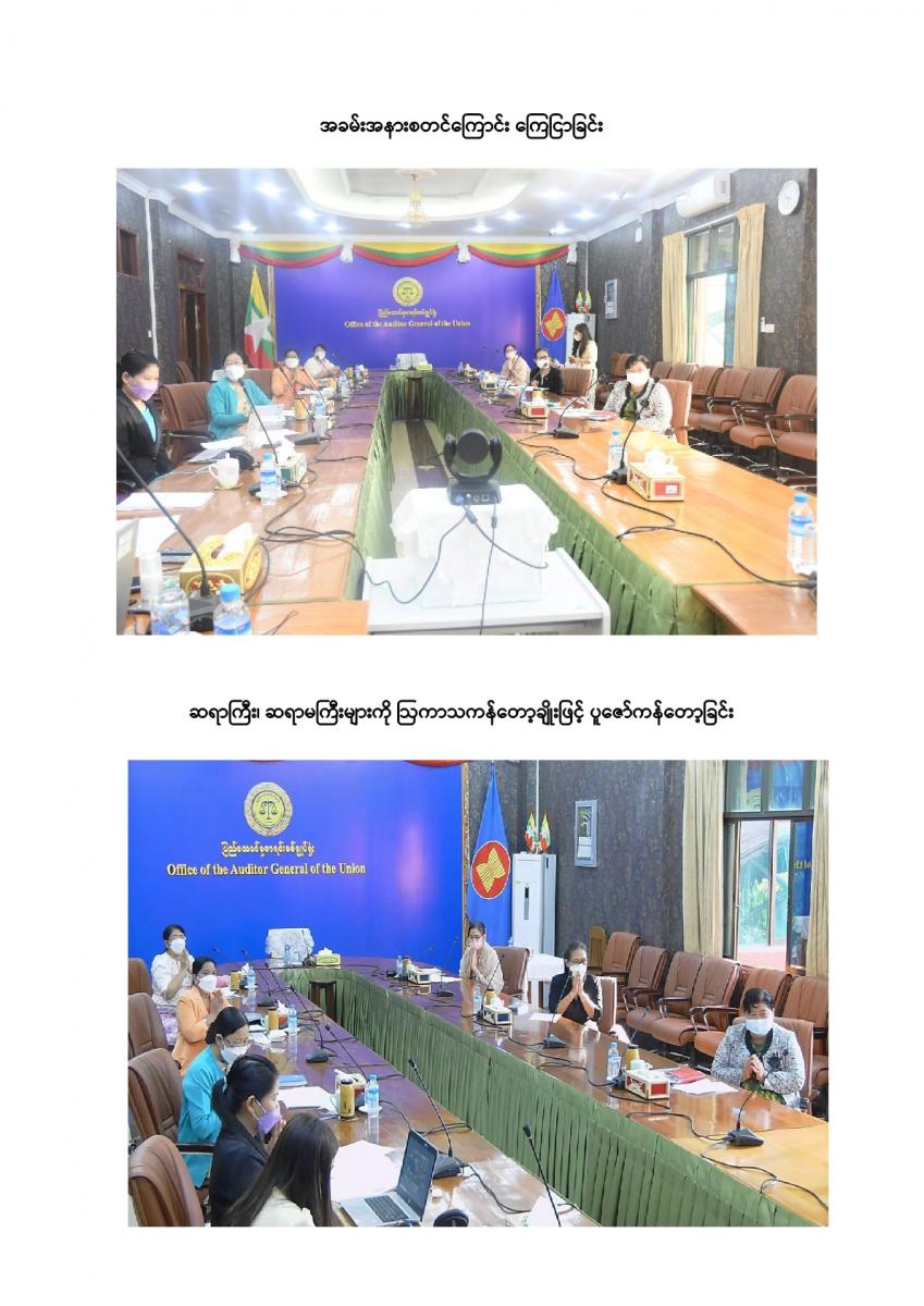 ပြည်ထောင်စုစာရင်းစစ်ချုပ်ရုံးမှ ကြီးမှူးကျင်းပသော တာဝန်ထမ်းဆောင်ဆဲနှင့် အငြိမ်းစား ပြည်ထောင်စုစာရင်းစစ်ချုပ်များ၊ ဒုတိယစာရင်းစစ်ချုပ်နှင့် တာဝန်ထမ်းဆောင်ခဲ့ကြသည့် တိုင်းဒေသကြီး/ ပြည်နယ်စာရင်းစစ်ချုပ်များ၊ ယခင်စာရင်းစစ်ရုံးအဆက်ဆက်တွင် တာဝန်ထမ်းဆောင်ခဲ့ကြသည့် ရုံးအကြီးအကဲများ၊ အသက် (၇၅) နှစ်နှင့်အထက်(ဒုတိယညွှန်ကြားရေးမှူးနှင့်အထက်) သက်ကြီးဝါကြီးဆရာသမားများအား ပူဇော်ကန်တော့သည့်အခမ်းအနားကို ၃၁-၁၂-၂၀၂၁ ရက်နေ့ နံနက် (၉:၀၀ နာရီ) တွင် ပြည်ထောင်စုစာရင်းစစ်ချုပ်ရုံး၊ အစည်းအဝေးခန်းမ၌ Virtual System ဖြင့် ကျင်းပခဲ့သည်။