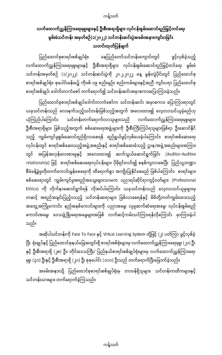 လက်မှတ်ရ ပြည်သူ့စာရင်းကိုင်သင်တန်း