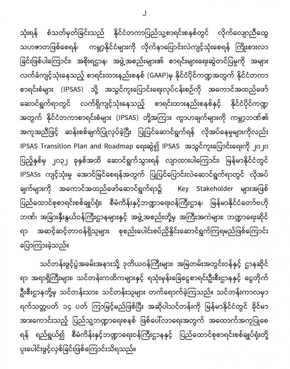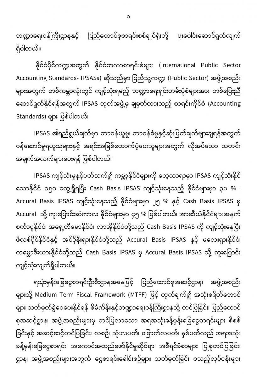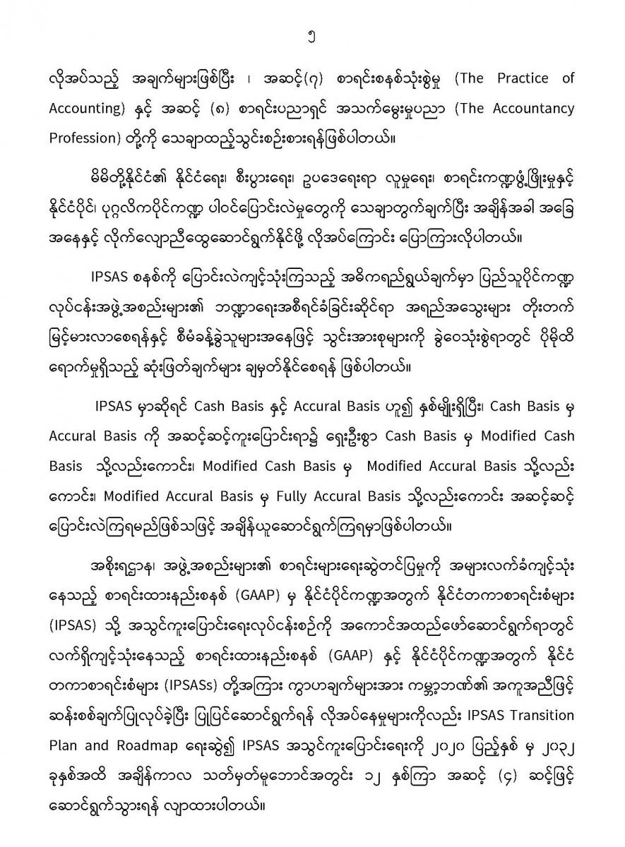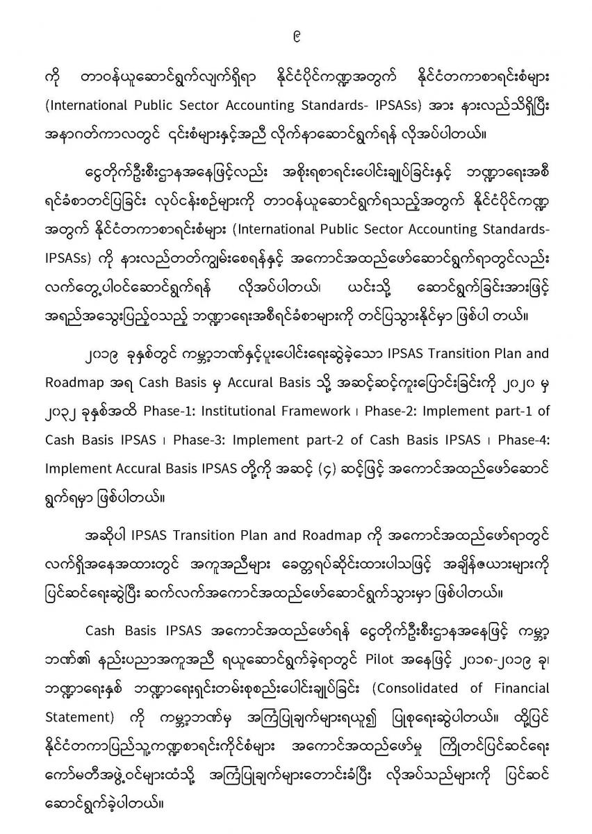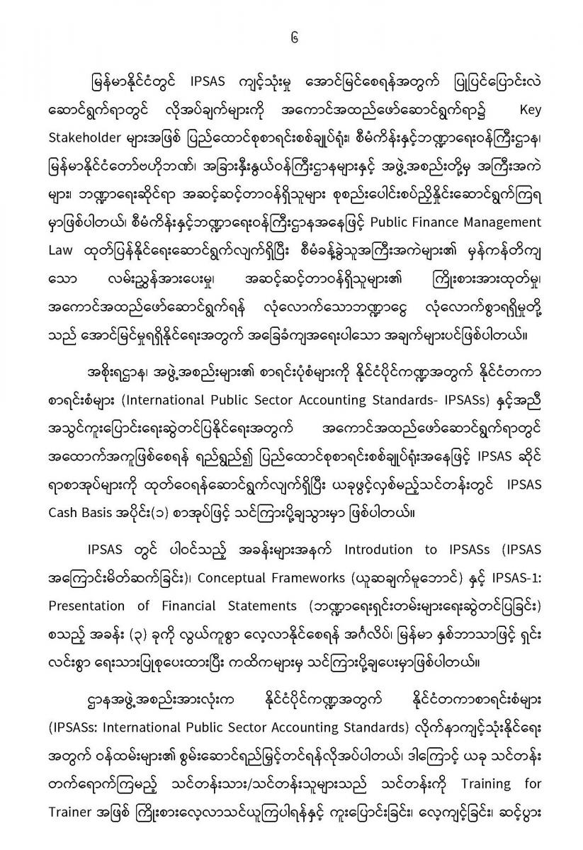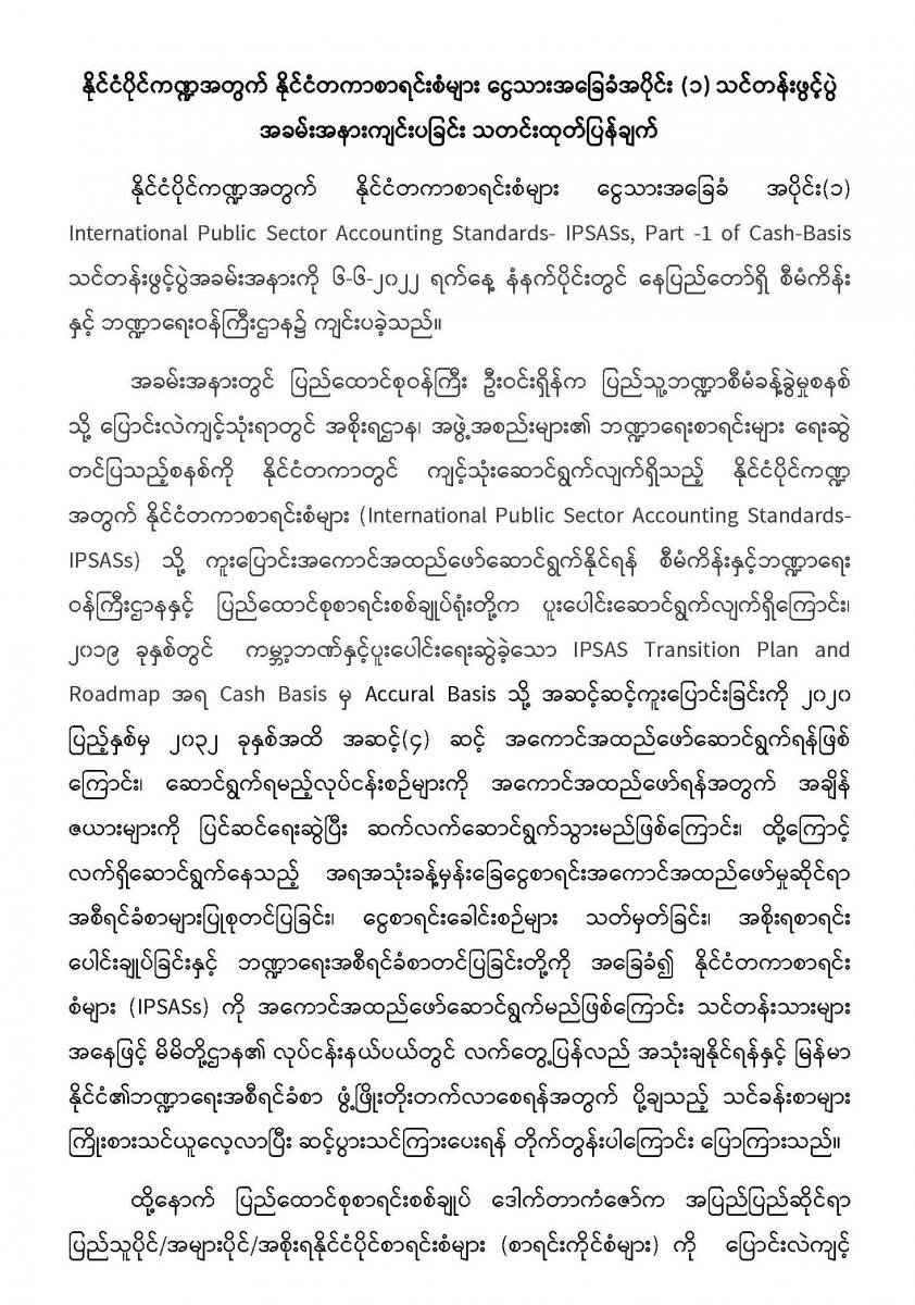 ၆-၆-၂၀၂၂ ရက်နေ့တွင် နိုင်ငံပိုင်ကဏ္ဍအတွက် နိုင်ငံတကာစာရင်းစံများ ငွေသားအခြေခံအပိုင်း (၁) သင်တန်းဖွင့်ပွဲ အခမ်းအနားကျင်းပခြင်း သတင်းထုတ်ပြန်ချက်