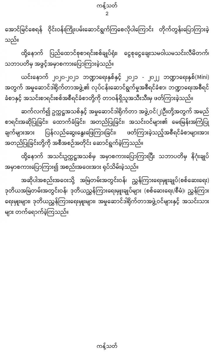 အမြဲတမ်းအတွင်းဝန် / ညွှန်ကြားရေးမှူးချုပ် (စီမံရေးရာဦးစီးဌာန/ နည်းပညာဖွံ့ဖြိုးရေးနှင့် လေ့ကျင့်ရေးဦးစီးဌာန)