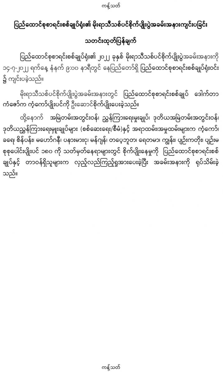 ၁၄-၇-၂၀၂၂ ရက်နေ့တွင် ပြည်ထောင်စုစာရင်းစစ်ချုပ်ရုံး၏ မိုးရာသီသစ်ပင်စိုက်ပျိုးပွဲအခမ်းအနားကျင်းပခြင်း သတင်းထုတ်ပြန်ချက်