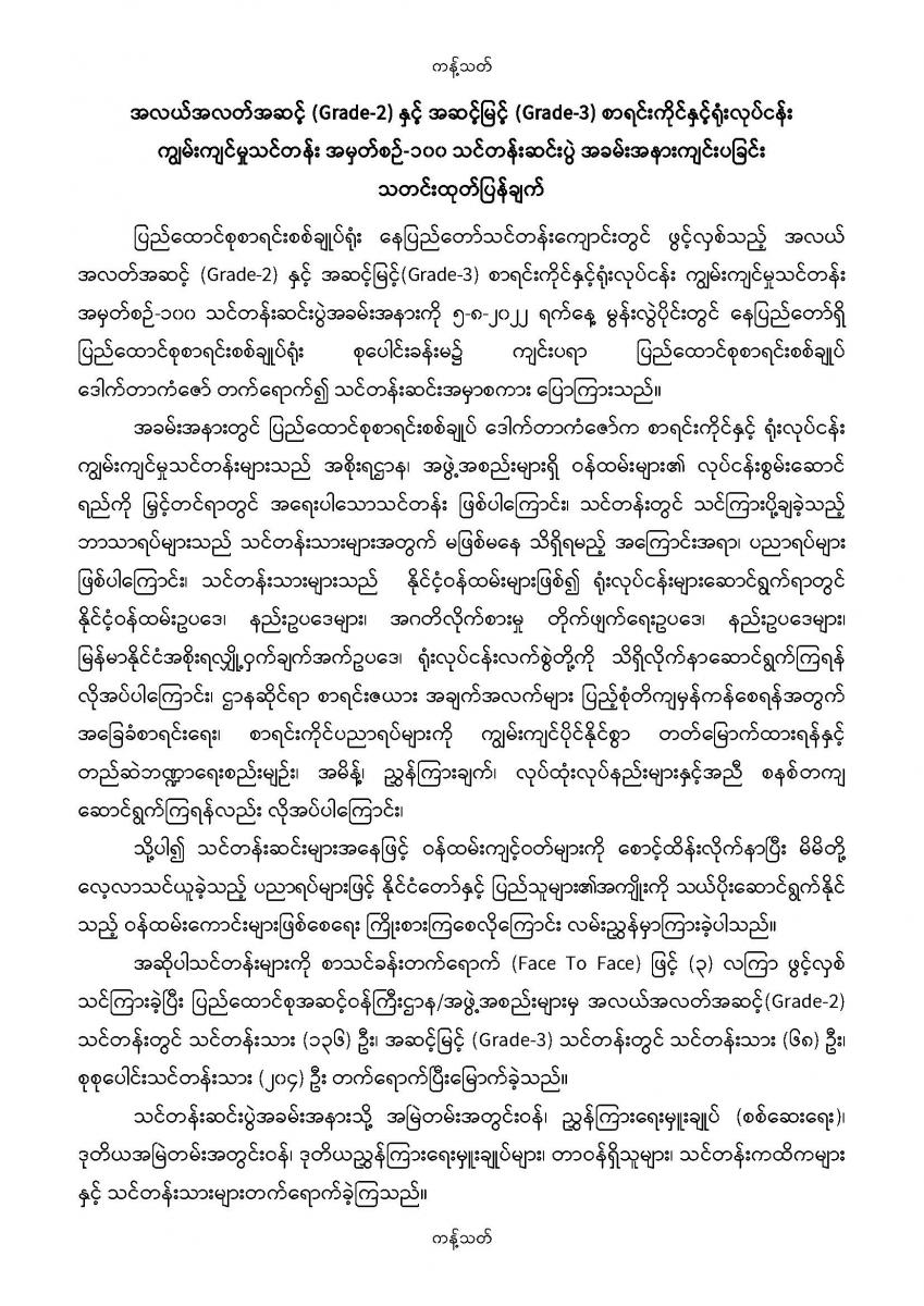 ၅-၈-၂၀၂၂ ရက်နေ့တွင် အလယ်အလတ်အဆင့် (Grade-2) နှင့် အဆင့်မြင့် (Grade-3) စာရင်းကိုင်နှင့်ရုံးလုပ်ငန်း ကျွမ်းကျင်မှုသင်တန်း အမှတ်စဉ်-၁၀၀ သင်တန်းဆင်းပွဲ အခမ်းအနားကျင်းပခြင်း