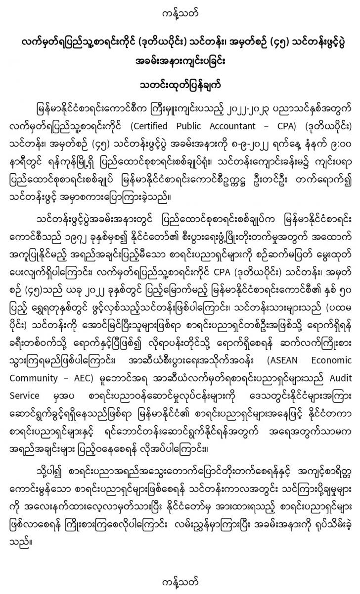 လက်မှတ်ရ ပြည်သူ့စာရင်းကိုင်သင်တန်း