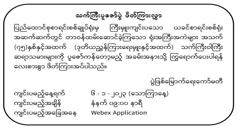 သက်ကြီးပူဇော်ပွဲ ဖိတ်ကြားလွှာ
