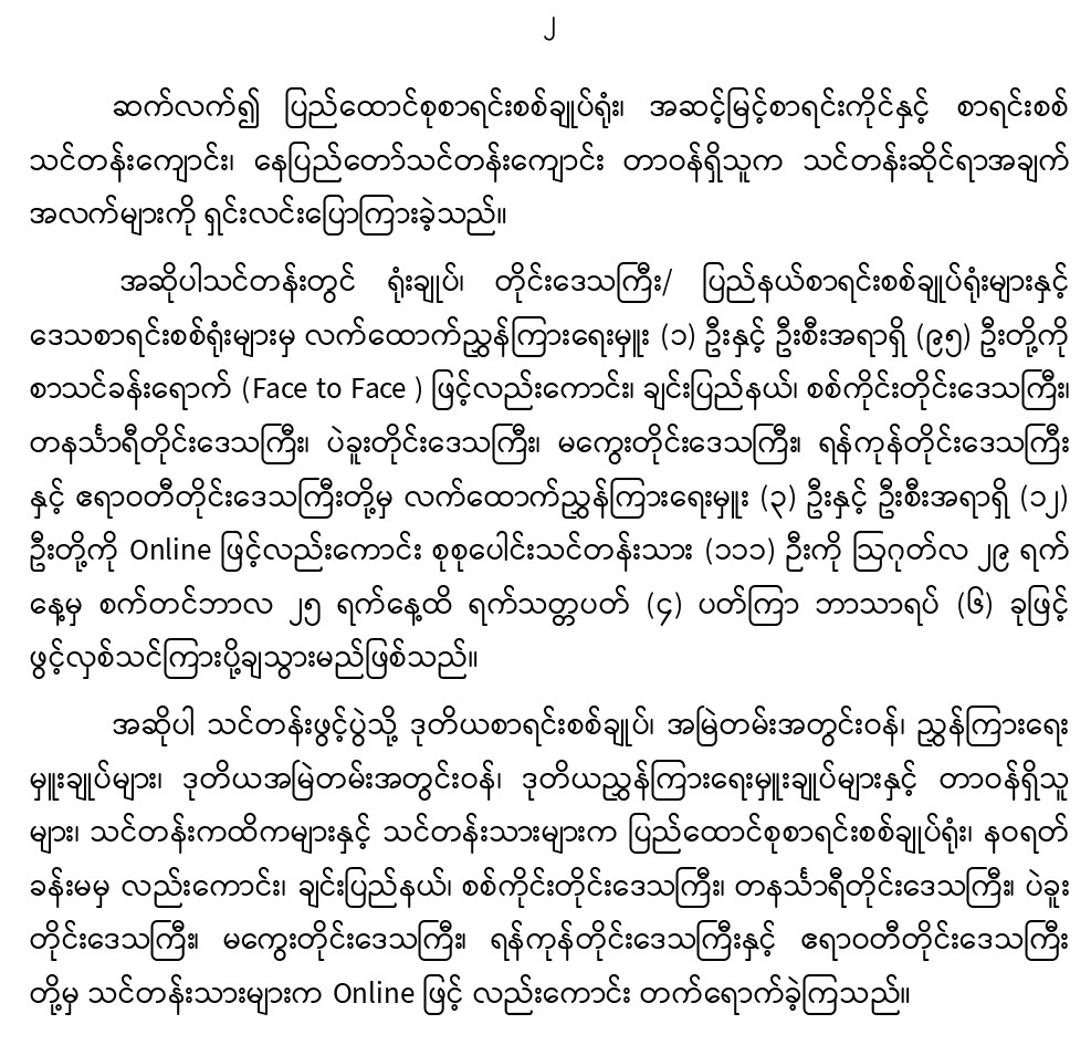 ၂၉-၈-၂၀၂၃ ရက်နေ့တွင် လက်ထောက်ညွှန်ကြားရေးမှူးများနှင့် ဦးစီးအရာရှိများ လုပ်ငန်းစွမ်းဆောင်ရည်မြှင့်တင်ရေး မွမ်းမံသင်တန်း၊ အမှတ်စဉ် (၄/၂၀၂၃ ) သင်တန်းဖွင့်ပွဲအခမ်းအနားကျင်းပခြင်း