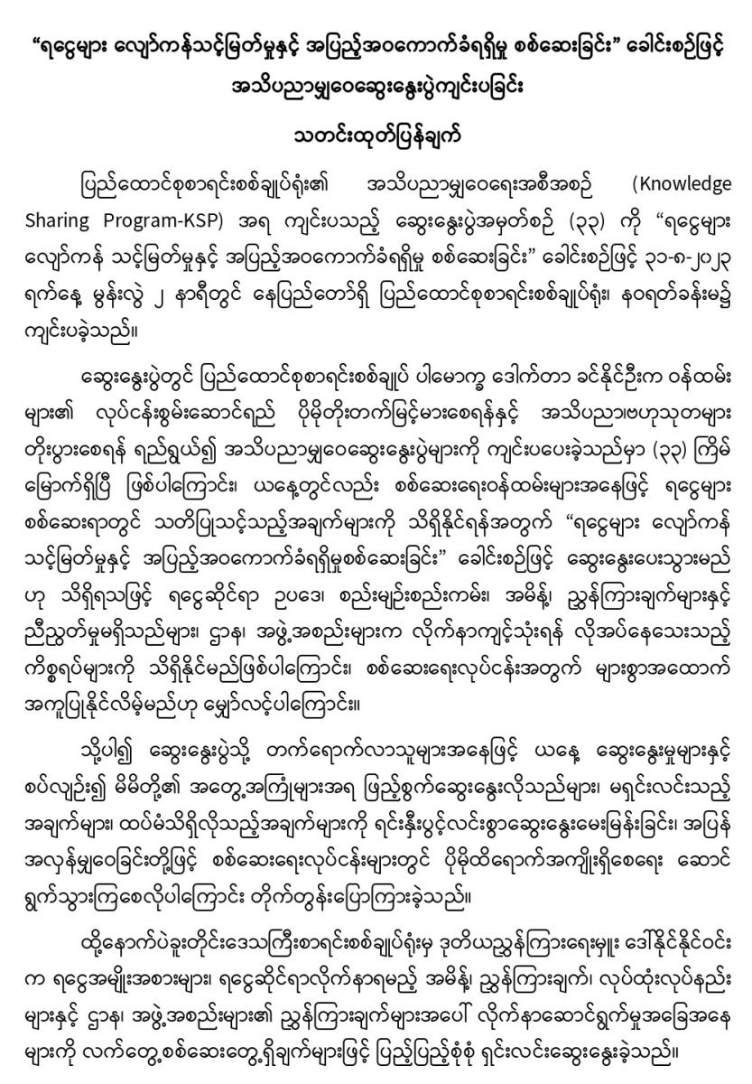 ၃၁-၈-၂၀၂၃ ရက်နေ့တွင် “ရငွေများ လျော်ကန်သင့်မြတ်မှုနှင့် အပြည့်အဝကောက်ခံရရှိမှု စစ်ဆေးခြင်း” ခေါင်းစဉ်ဖြင့် အသိပညာမျှဝေဆွေးနွေးပွဲကျင်းပခြင်း