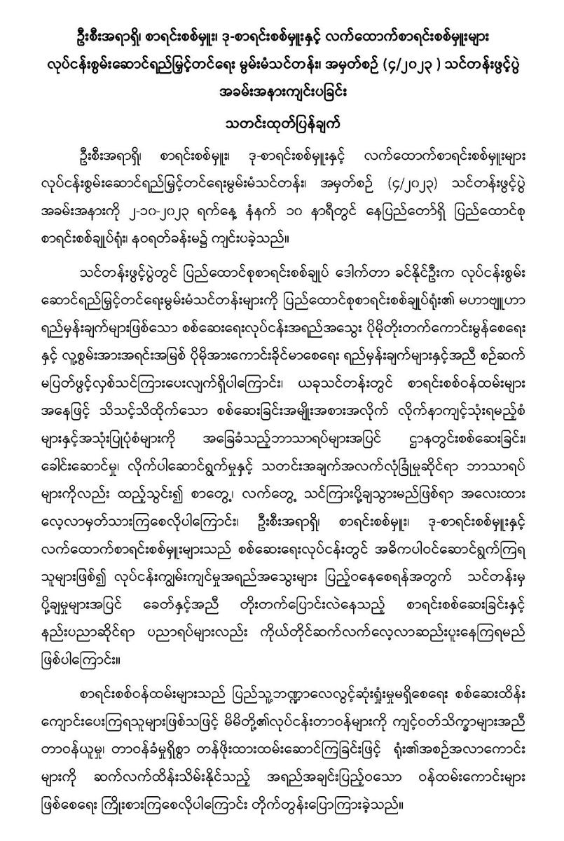 အမြဲတမ်းအတွင်းဝန် / ညွှန်ကြားရေးမှူးချုပ် (စီမံရေးရာဦးစီးဌာန/ နည်းပညာဖွံ့ဖြိုးရေးနှင့် လေ့ကျင့်ရေးဦးစီးဌာန)