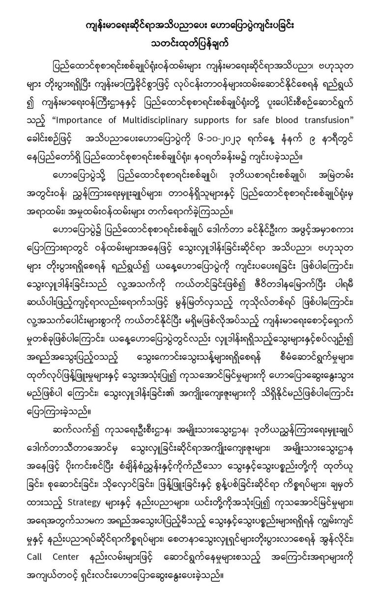 ၆-၁၀-၂၀၂၃ ရက်နေ့တွင် ကျန်းမာရေးဆိုင်ရာအသိပညာပေး ဟောပြောပွဲကျင်းပခြင်း