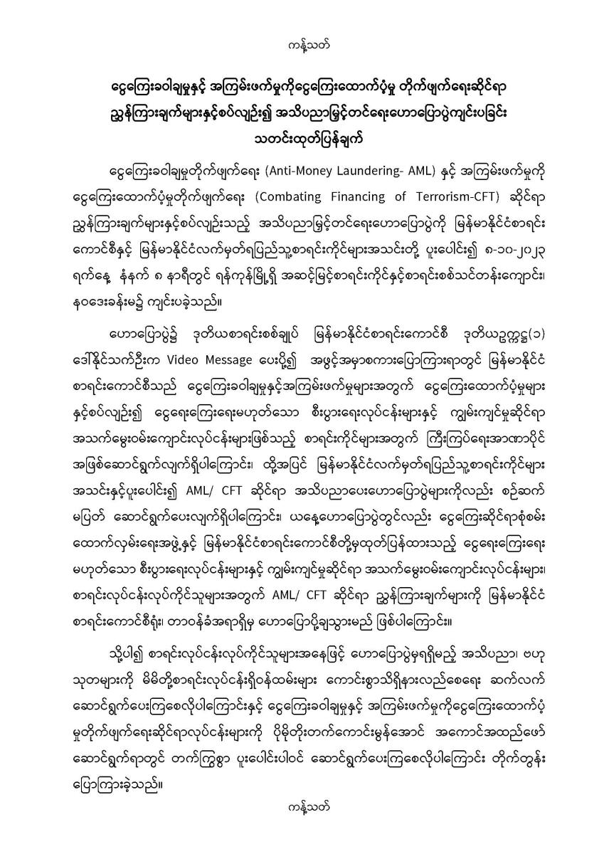 ၈-၁၀-၂၀၂၃ ရက်နေ့တွင် ငွေကြေးခဝါချမှုနှင့် အကြမ်းဖက်မှုကို ငွေကြေးထောက်ပံ့မှုတိုက်ဖျက်ရေးဆိုင်ရာ ညွှန်ကြားချက်များနှင့်စပ်လျဉ်း၍ အသိပညာမြှင့်တင်ရေးဟောပြောပွဲကျင်းပခြင်း