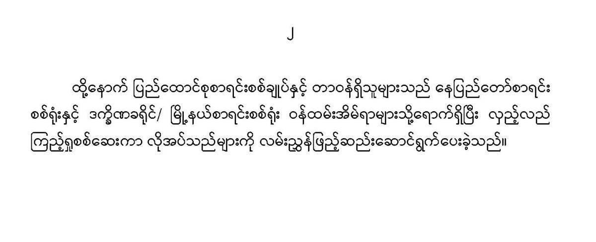 ဒုတိယညွှန်ကြားရေးမှုးချုပ်(စီမံရေးရာဦးစီးဌာန/ နည်းပညာဖွံ့ဖြိုးရေးနှင့် လေ့ကျင့်ရေးဦးစီးဌာန)