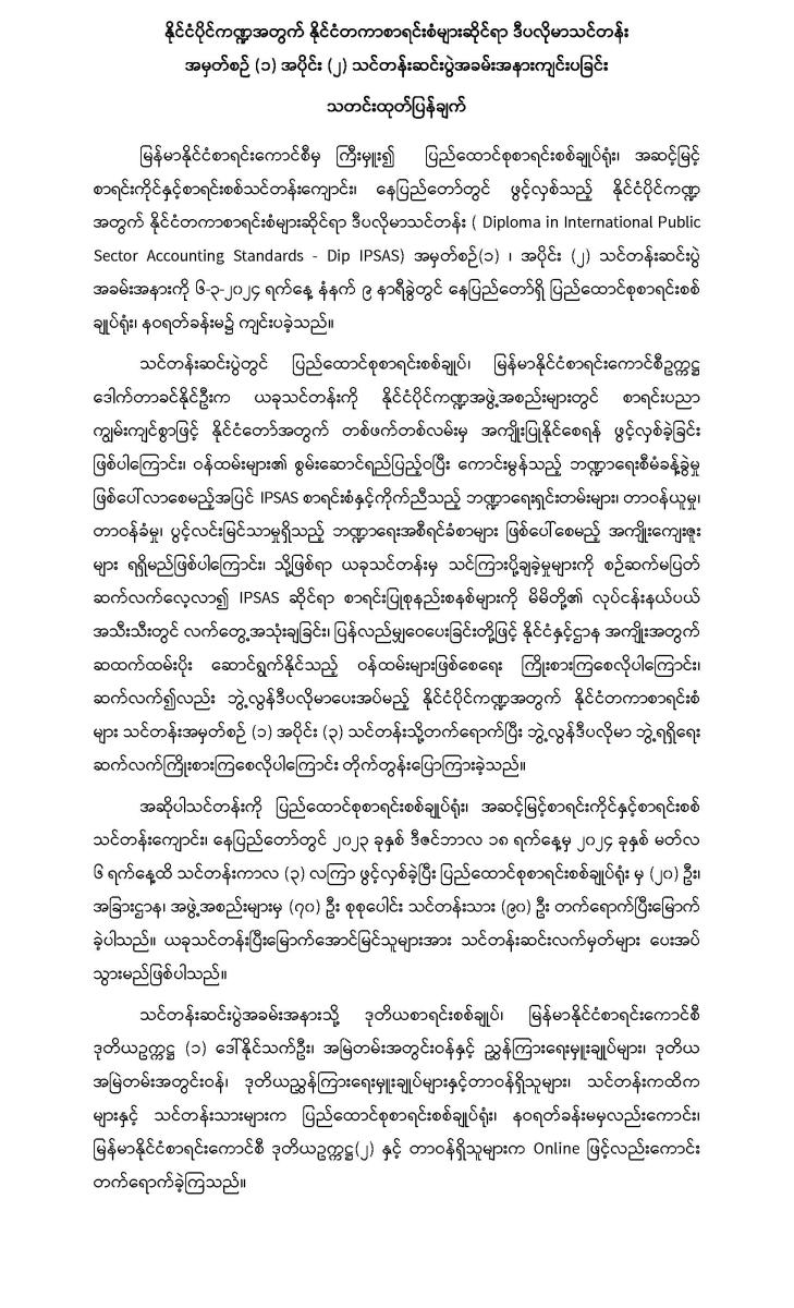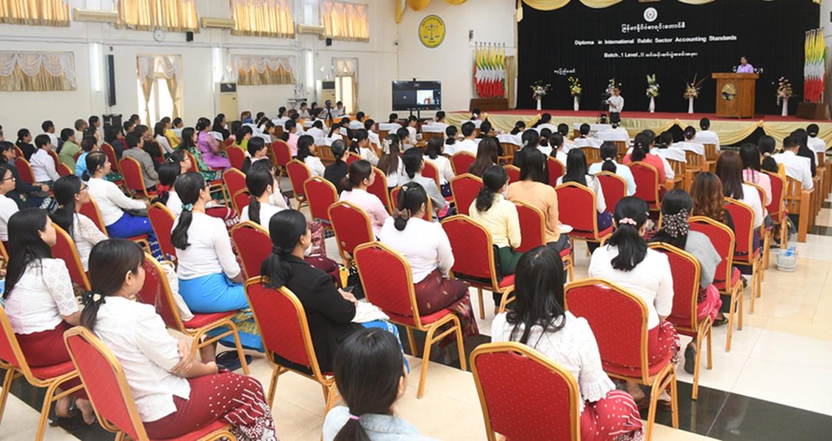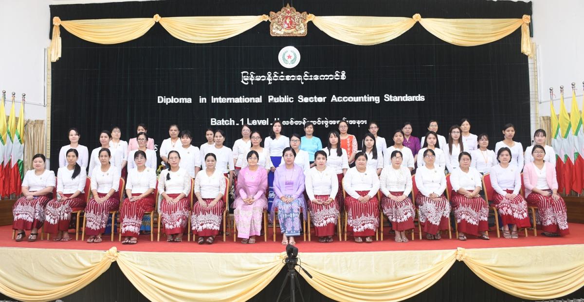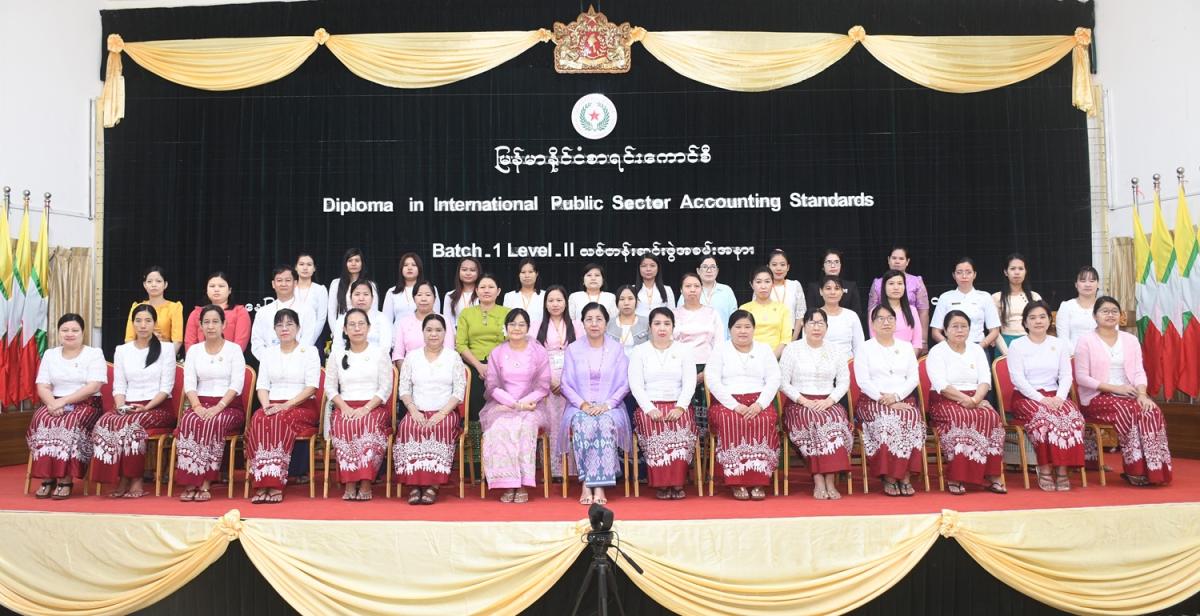 ၆-၃-၂၀၂၄ ရက်နေ့တွင် နိုင်ငံပိုင်ကဏ္ဍအတွက် နိုင်ငံတကာစာရင်းစံများဆိုင်ရာ ဒီပလိုမာသင်တန်းအမှတ်စဉ် (၁) အပိုင်း (၂) သင်တန်းဆင်းပွဲအခမ်းအနားကျင်းပခြင်း