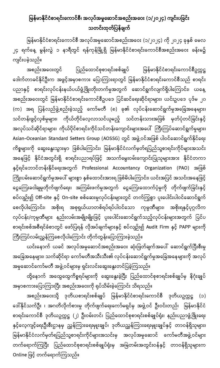 ၂၄-၅-၂၀၂၄ ရက်နေ့တွင် မြန်မာနိုင်ငံစာရင်းကောင်စီ၊ အလုပ်အမှုဆောင်အစည်းအဝေး (၁/၂၀၂၄) ကျင်းပခြင်း
