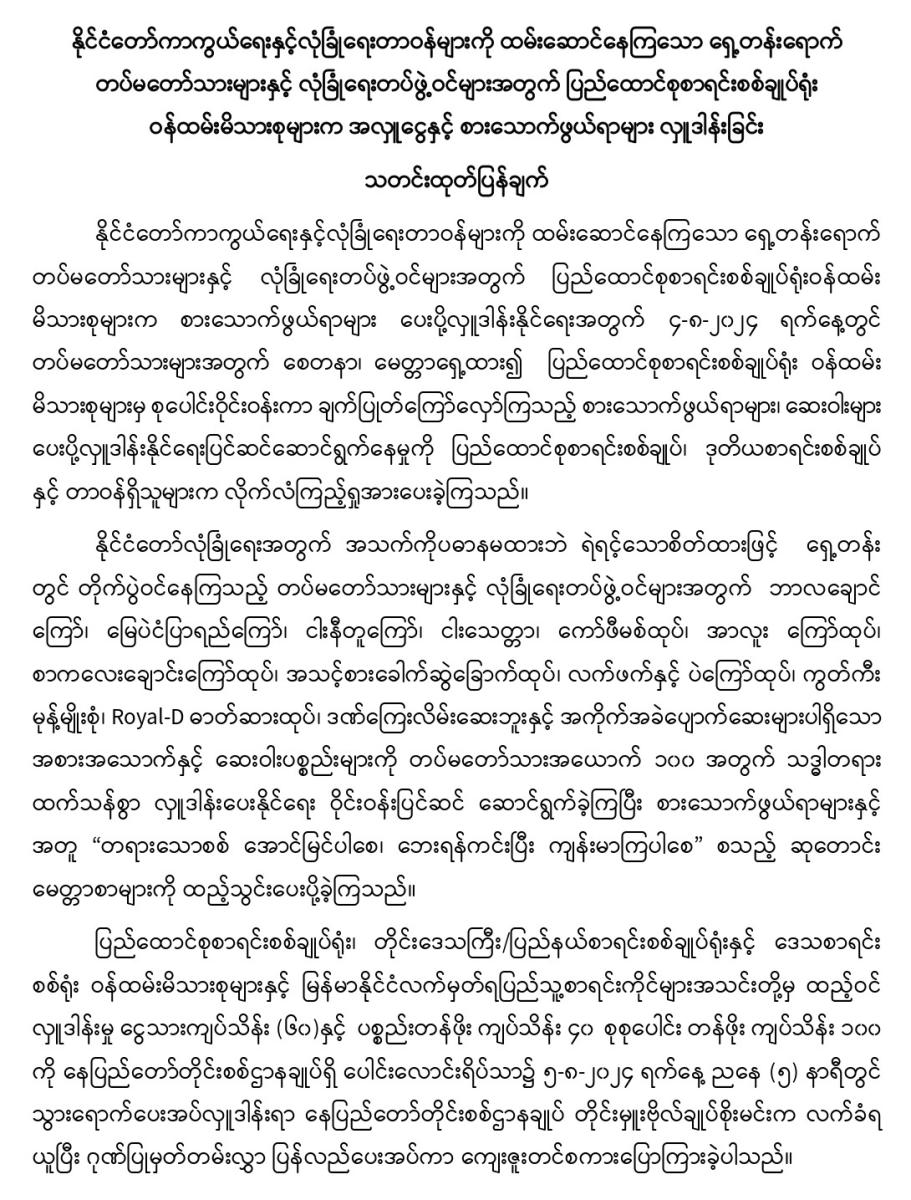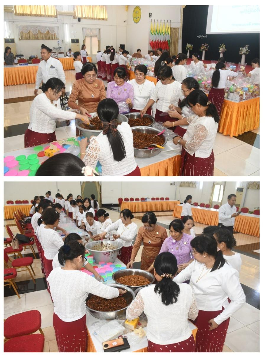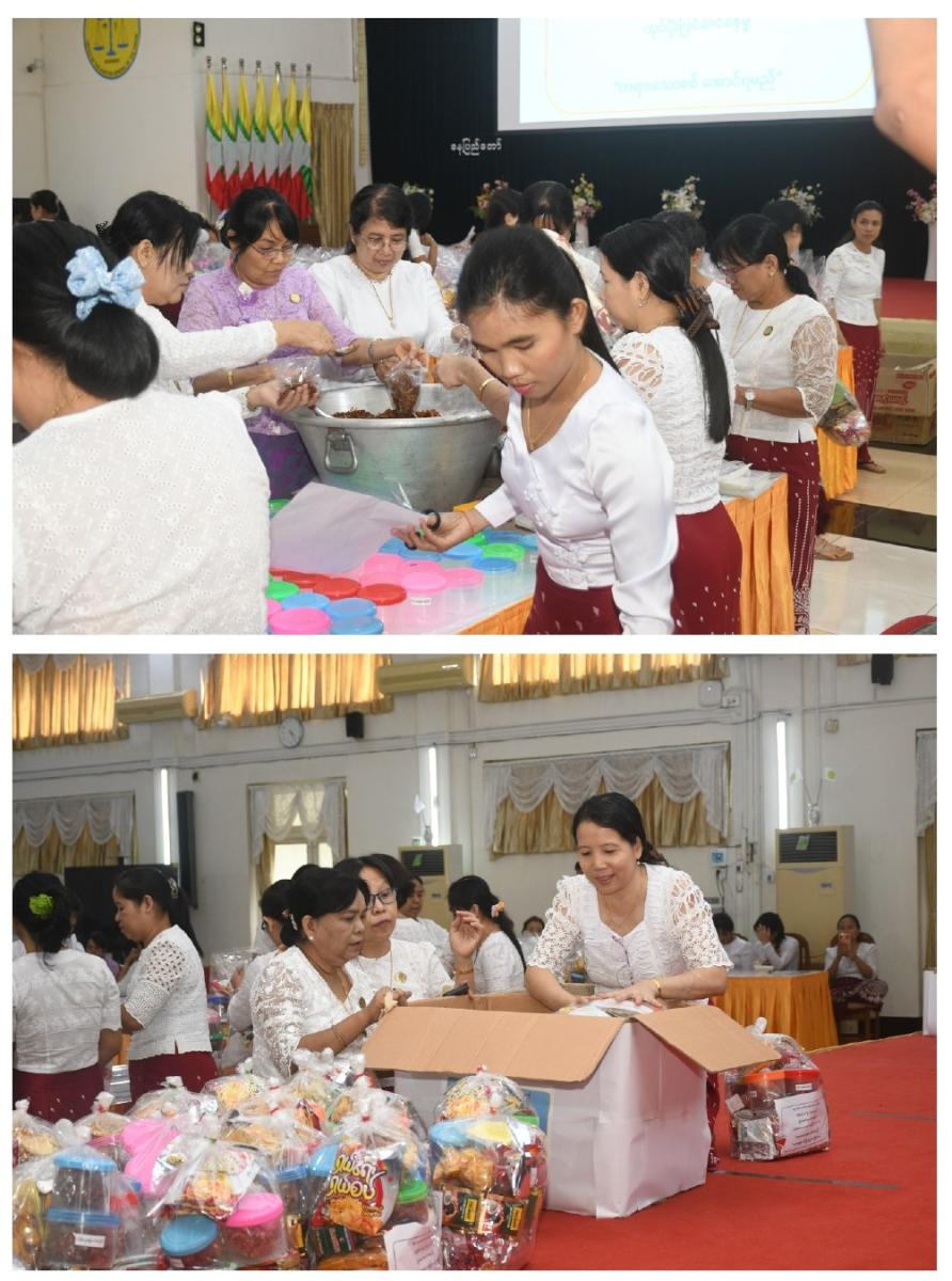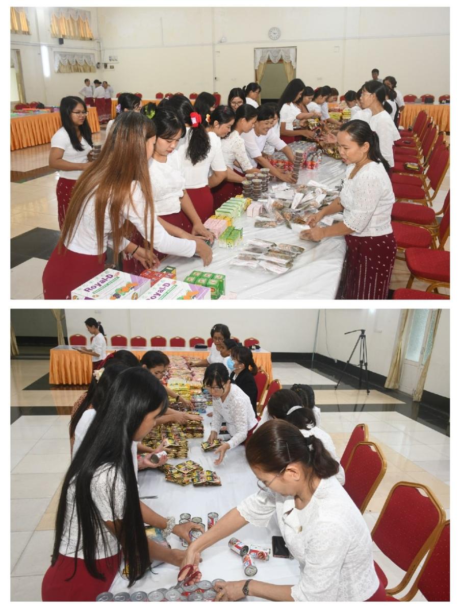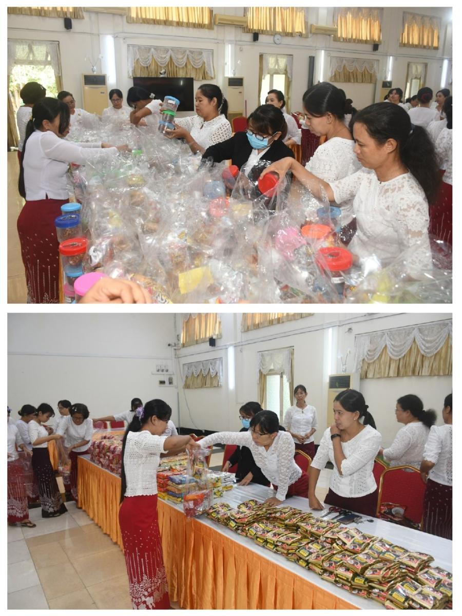 ၄-၈-၂၀၂၄ ရက်နေ့တွင် နိုင်ငံတော်ကာကွယ်ရေးနှင့်လုံခြုံရေးတာဝန်များကို ထမ်းဆောင်နေကြသော ရှေ့တန်းရောက် တပ်မတော်သားများနှင့် လုံခြုံရေးတပ်ဖွဲ့ဝင်များအတွက် ပြည်ထောင်စုစာရင်းစစ်ချုပ်ရုံး ဝန်ထမ်းမိသားစုများက အလှူငွေနှင့် စားသောက်ဖွယ်ရာများ လှူဒါန်းခြင်း