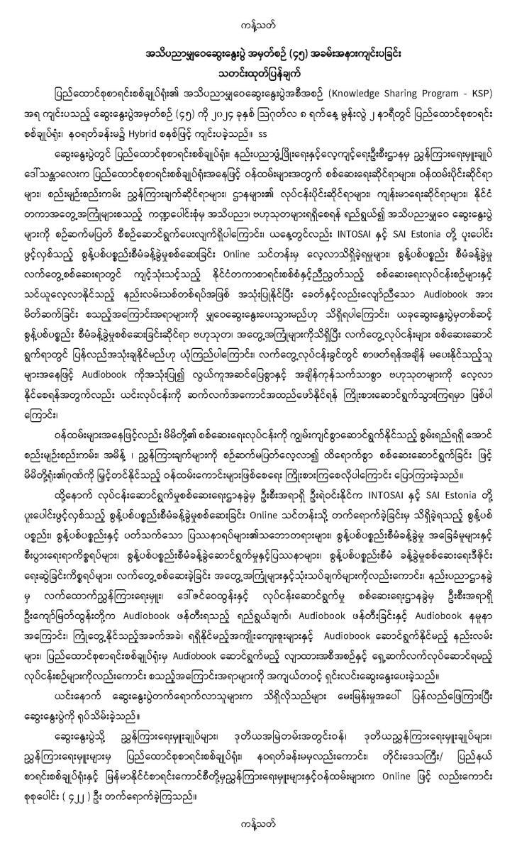 ၈-၈-၂၀၂၄ ရက်နေ့တွင် အသိပညာမျှဝေဆွေးနွေးပွဲ အမှတ်စဉ် (၄၅) အခမ်းအနားကျင်းပခြင်း