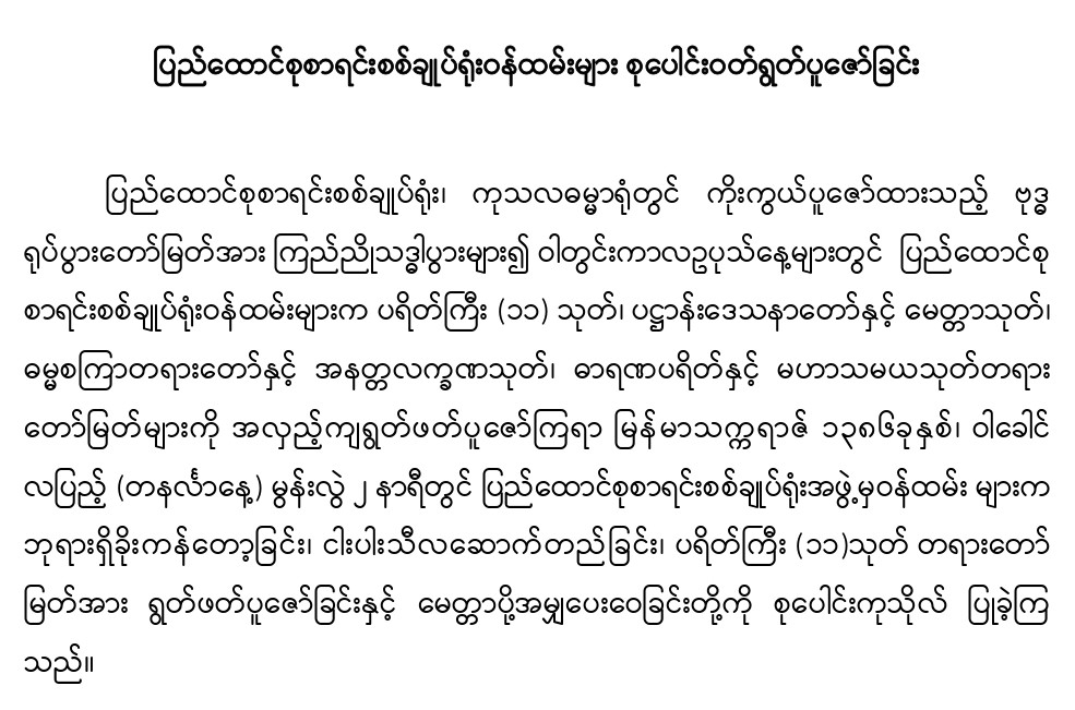 ၁၉-၈-၂၀၂၄ ရက်နေ့တွင် ပြည်ထောင်စုစာရင်းစစ်ချုပ်ရုံးဝန်ထမ်းများ စုပေါင်းဝတ်ရွတ်ပူဇော်ခြင်း