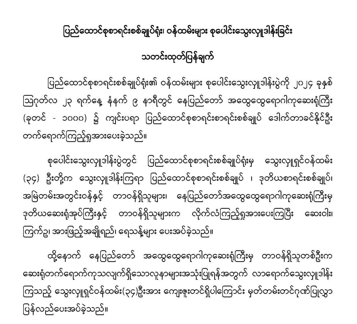 မြန်မာနိုင်ငံ စာရင်းကောင်စီ အမှုဆောင် အဖွဲ့ဝင်များ