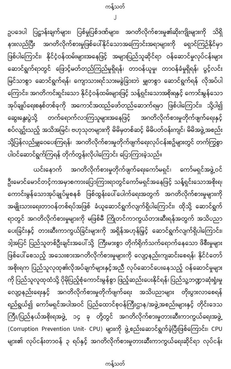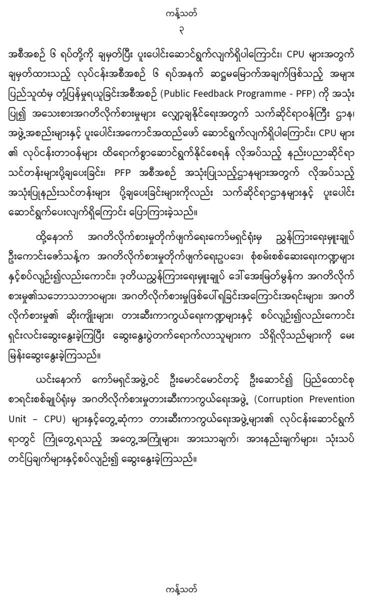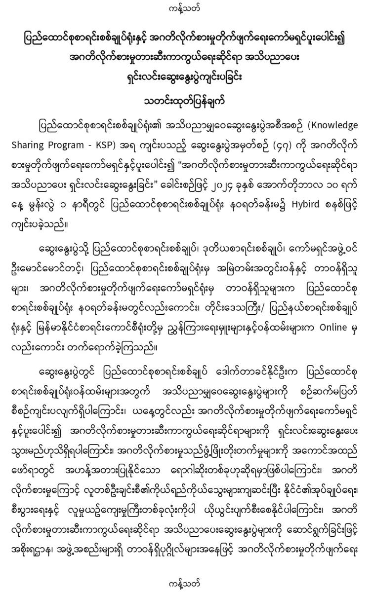 ပြည်ထောင်စုစာရင်းစစ်ချုပ်ရုံးနှင့် အဂတိလိုက်စားမှုတိုက်ဖျက်ရေးကော်မရှင်ပူးပေါင်း၍ အဂတိလိုက်စားမှုတားဆီးကာကွယ်ရေးဆိုင်ရာ အသိပညာပေး ရှင်းလင်းဆွေးနွေးပွဲကျင်းပခြင်း
