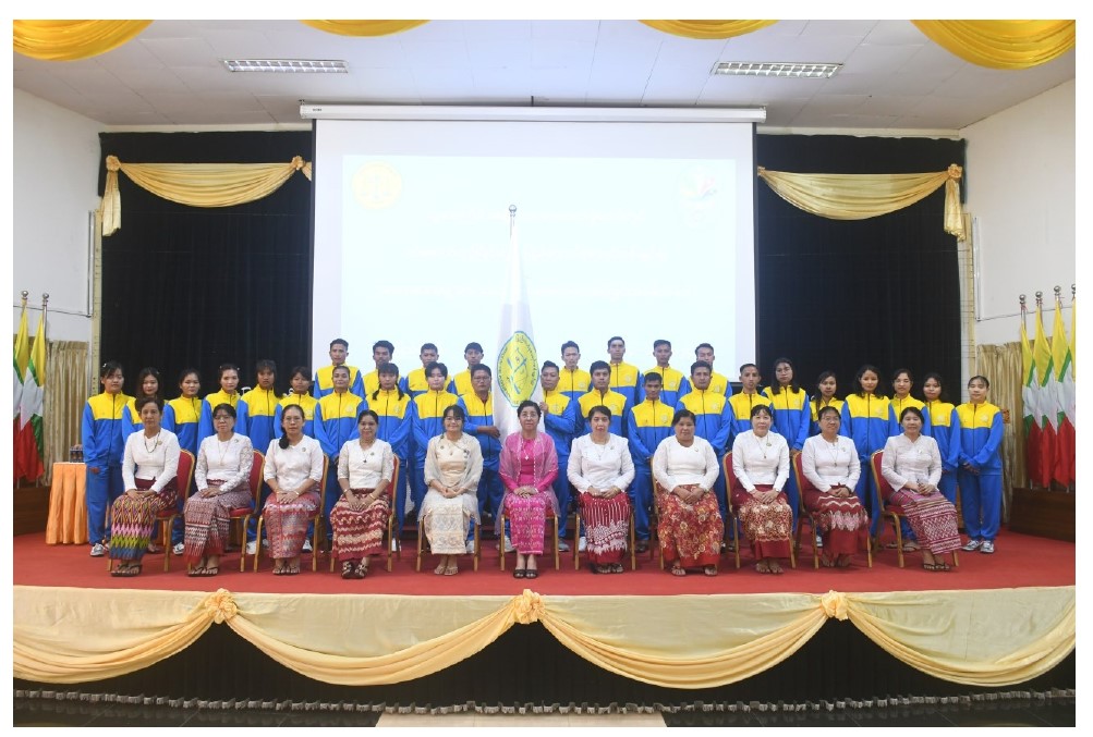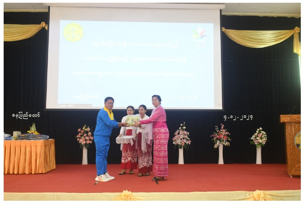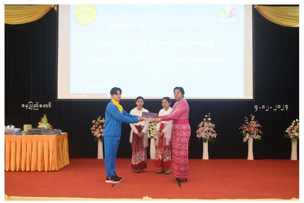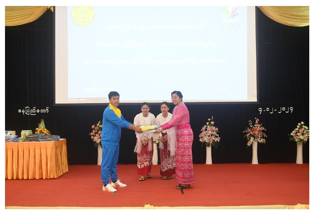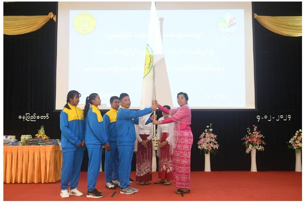 ပြည်ထောင်စုစာရင်းစစ်ချုပ် ဒေါက်တာခင်နိုင်ဦး ပြည်ထောင်စုစာရင်းစစ်ချူပ်ရုံးကိုယ်စားပြု အားကစားသမားများထံ အောင်နိုင်ရေးအလံပေးအပ်ခြင်းအခမ်းအနားကျင်းပခြင်း