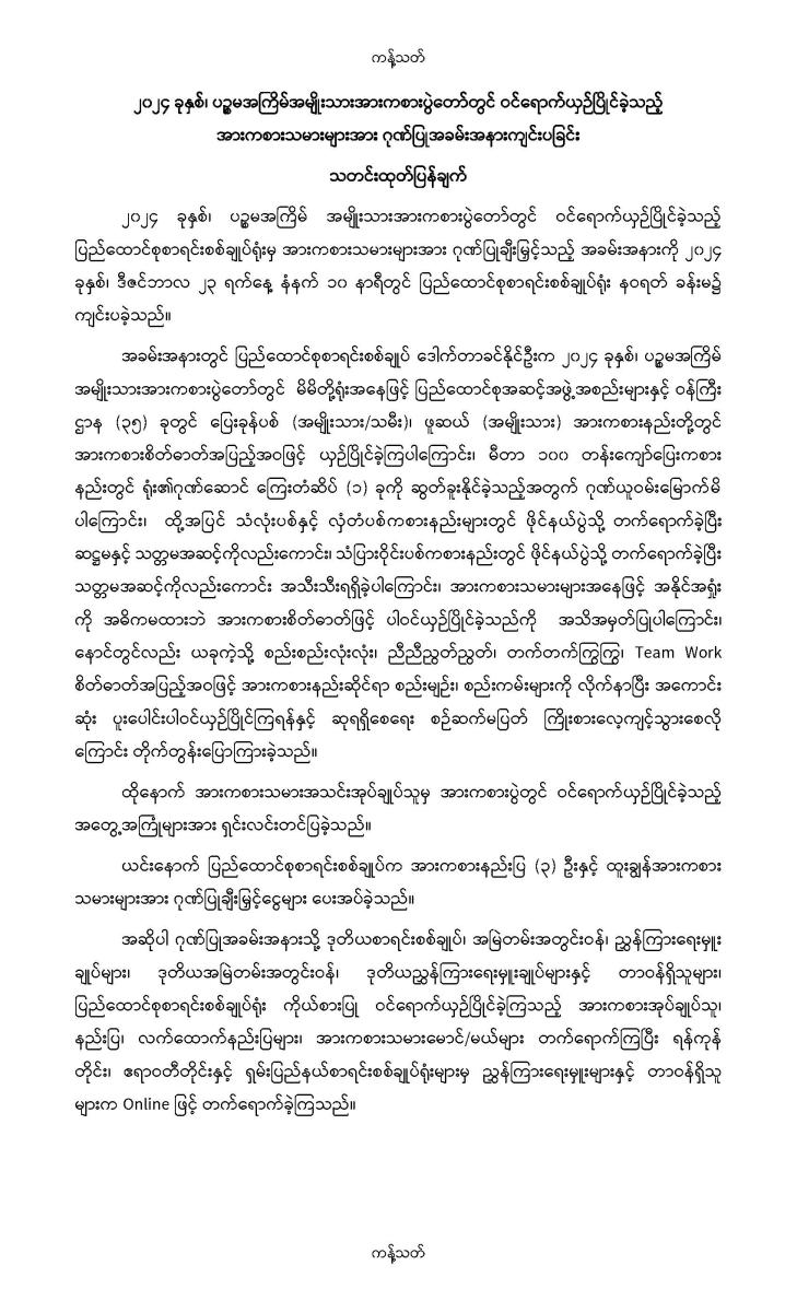 အမြဲတမ်းအတွင်းဝန် / ညွှန်ကြားရေးမှူးချုပ် (စီမံရေးရာဦးစီးဌာန/ နည်းပညာဖွံ့ဖြိုးရေးနှင့် လေ့ကျင့်ရေးဦးစီးဌာန)