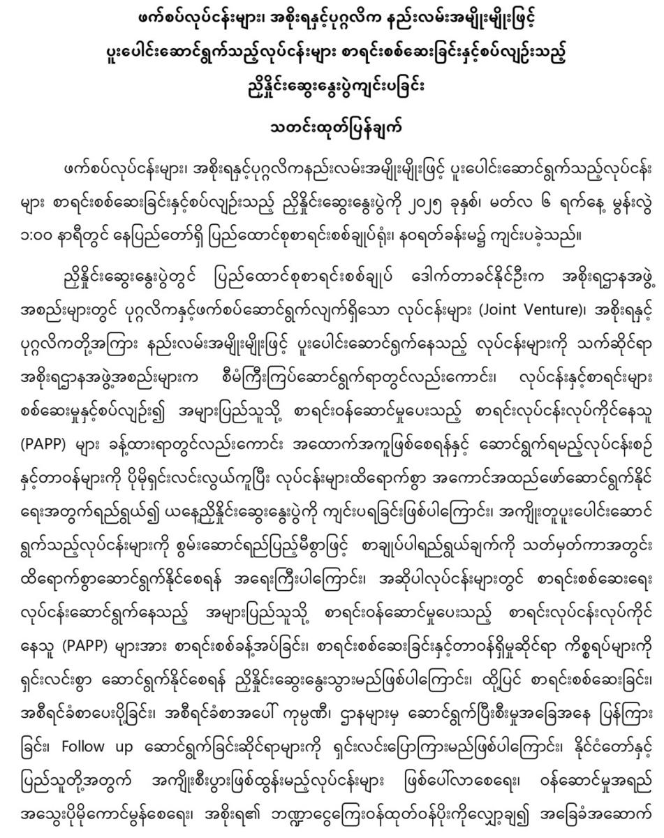 ဖက်စပ်လုပ်ငန်းများ၊ အစိုးရနှင့်ပုဂ္ဂလိက နည်းလမ်းအမျိုးမျိုးဖြင့် ပူးပေါင်းဆောင်ရွက်သည့်လုပ်ငန်းများ စာရင်းစစ်ဆေးခြင်းနှင့်စပ်လျဉ်းသည့် ညှိနှိုင်းဆွေးနွေးပွဲကျင်းပခြင်း