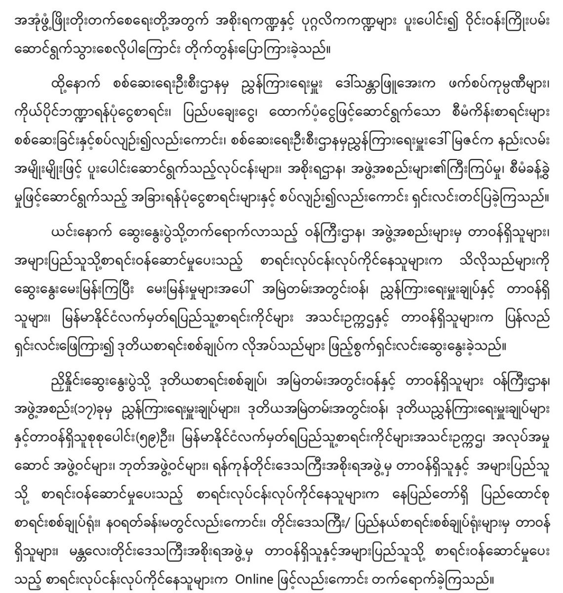 အမြဲတမ်းအတွင်းဝန် / ညွှန်ကြားရေးမှူးချုပ် (စီမံရေးရာဦးစီးဌာန/ နည်းပညာဖွံ့ဖြိုးရေးနှင့် လေ့ကျင့်ရေးဦးစီးဌာန)