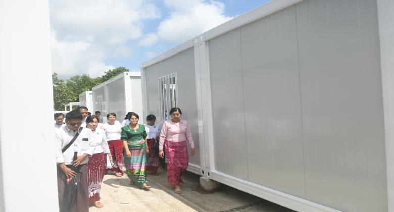 ပြည်ထောင်စုစာရင်းစစ်ချုပ် ဒေါက်တာ ခင်နိုင်ဦး ပြည်ထောင်စုစာရင်းစစ်ချုပ်ရုံး ငလျင်ဘေးသင့်ဝန်ထမ်းများနေထိုင်ရန် Container House များ တပ်ဆင်ပြီးစီးမှု ကြည့်ရှုစစ်ဆေးခြင်း