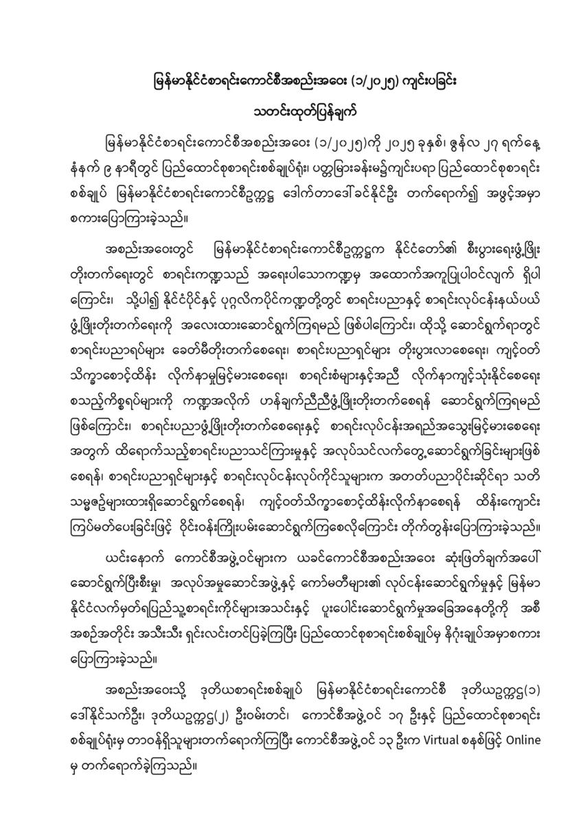 မြန်မာနိုင်ငံစာရင်းကောင်စီလုပ်ငန်းများ