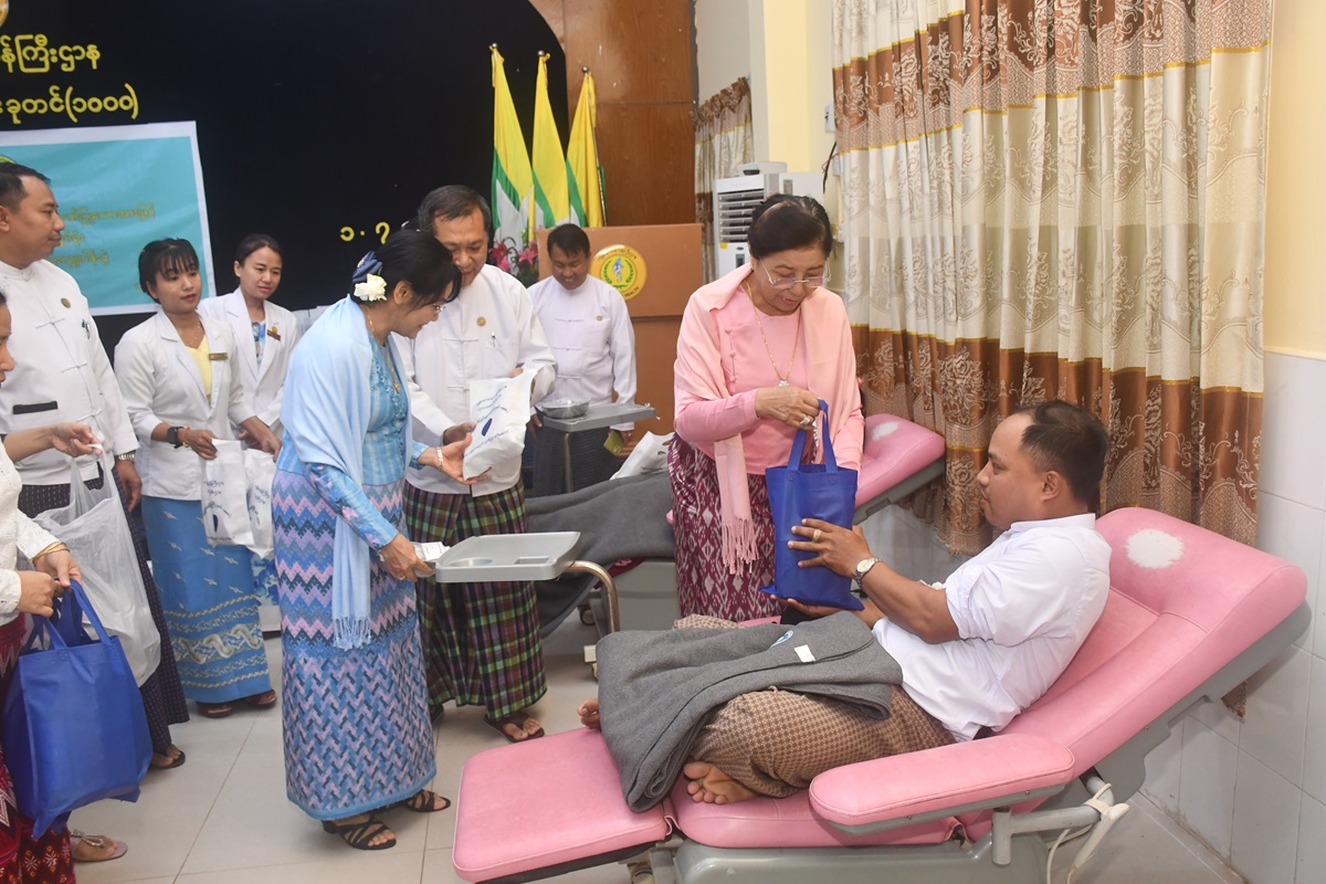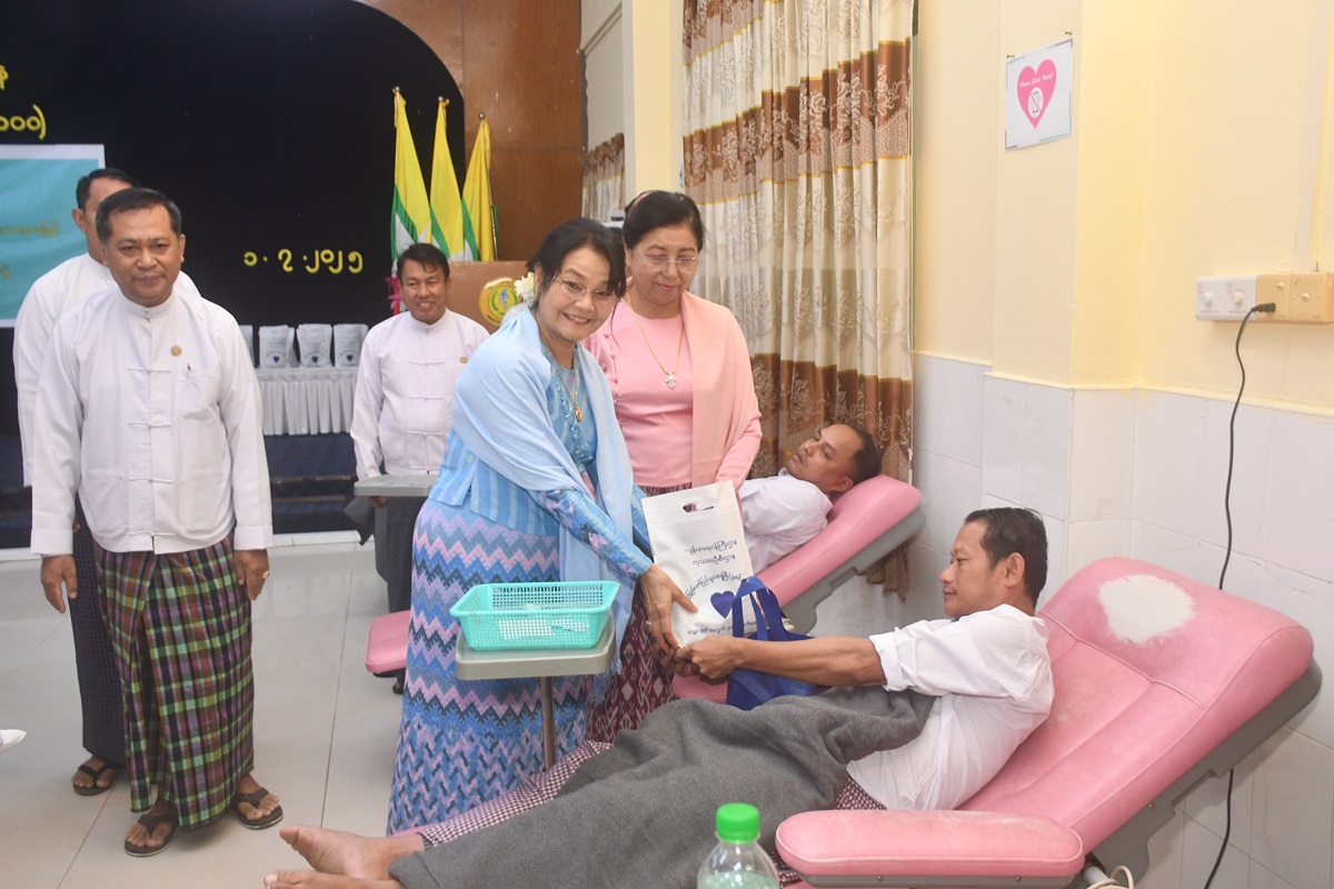 ပြည်ထောင်စုစာရင်းစစ်ချုပ် မြန်မာအမျိုးသမီးများနေ့ကို ကြိုဆိုဂုဏ်ပြုသောအားဖြင့် ဝန်ထမ်းများ စုပေါင်းသွေးလှူဒါန်းမှုကို ကြည့်ရူအားပေးခြင်း