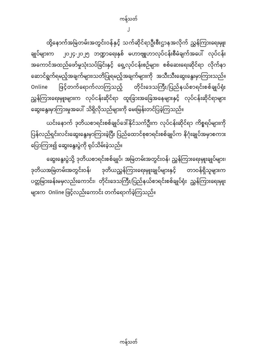 အမြဲတမ်းအတွင်းဝန် / ညွှန်ကြားရေးမှူးချုပ် (စီမံရေးရာဦးစီးဌာန/ နည်းပညာဖွံ့ဖြိုးရေးနှင့် လေ့ကျင့်ရေးဦးစီးဌာန)