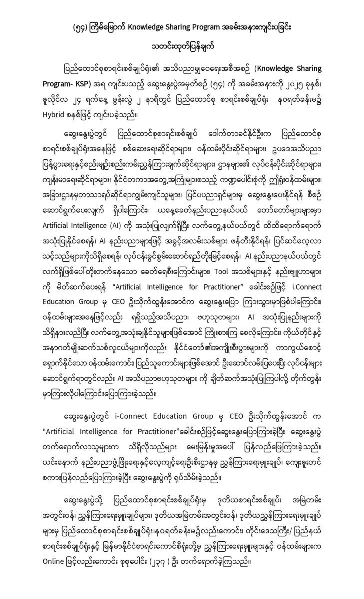 (၅၄) ကြိမ်မြောက် Knowledge Sharing Program အခမ်းအနားကျင်းပခြင်း