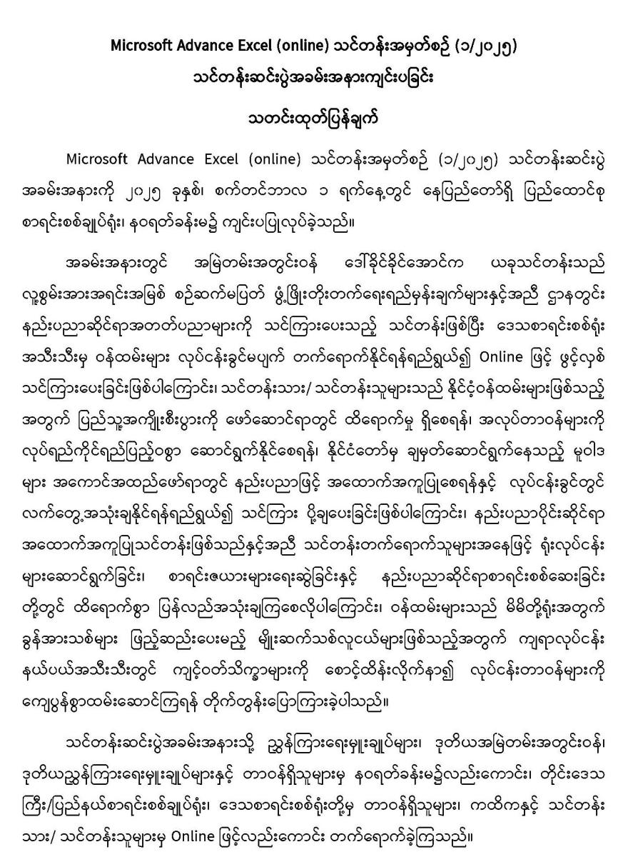 Microsoft Advance Excel (online) သင်တန်းအမှတ်စဉ် (၁/၂၀၂၅) သင်တန်းဆင်းပွဲအခမ်းအနားကျင်းပခြင်း