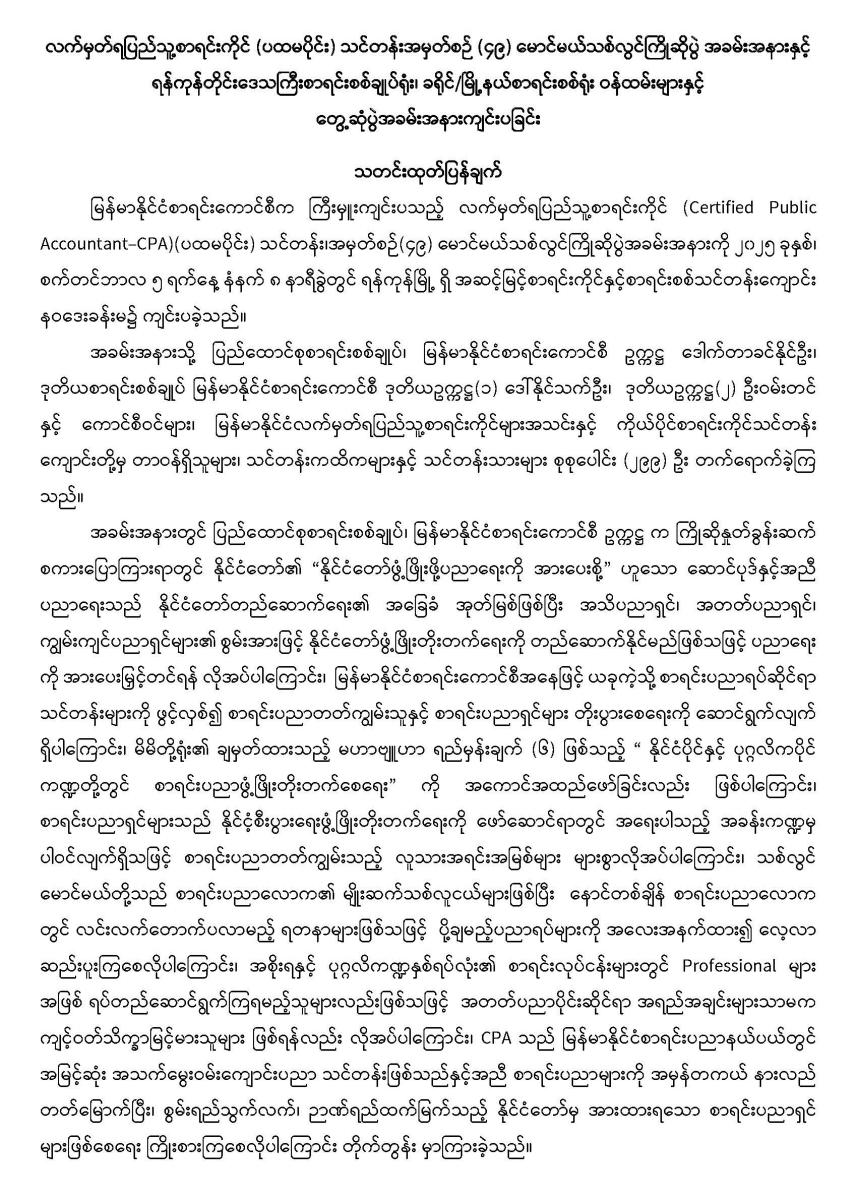 လက်မှတ်ရ ပြည်သူ့စာရင်းကိုင်သင်တန်း