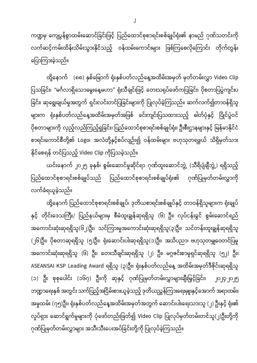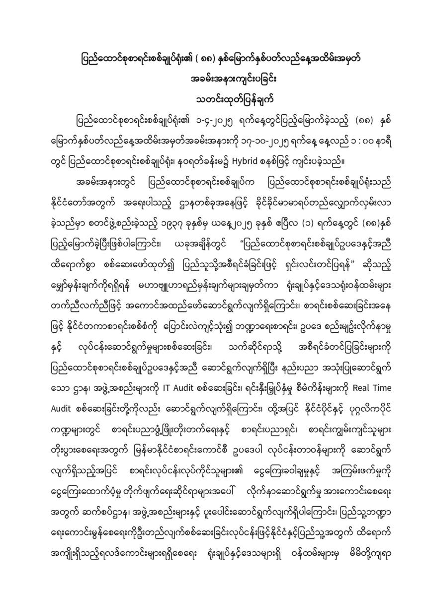 ပြည်ထောင်စုစာရင်းစစ်ချုပ်ရုံး၏ ( ၈၈) နှစ်မြောက်နှစ်ပတ်လည်နေ့အထိမ်းအမှတ် အခမ်းအနားကျင်းပခြင်း