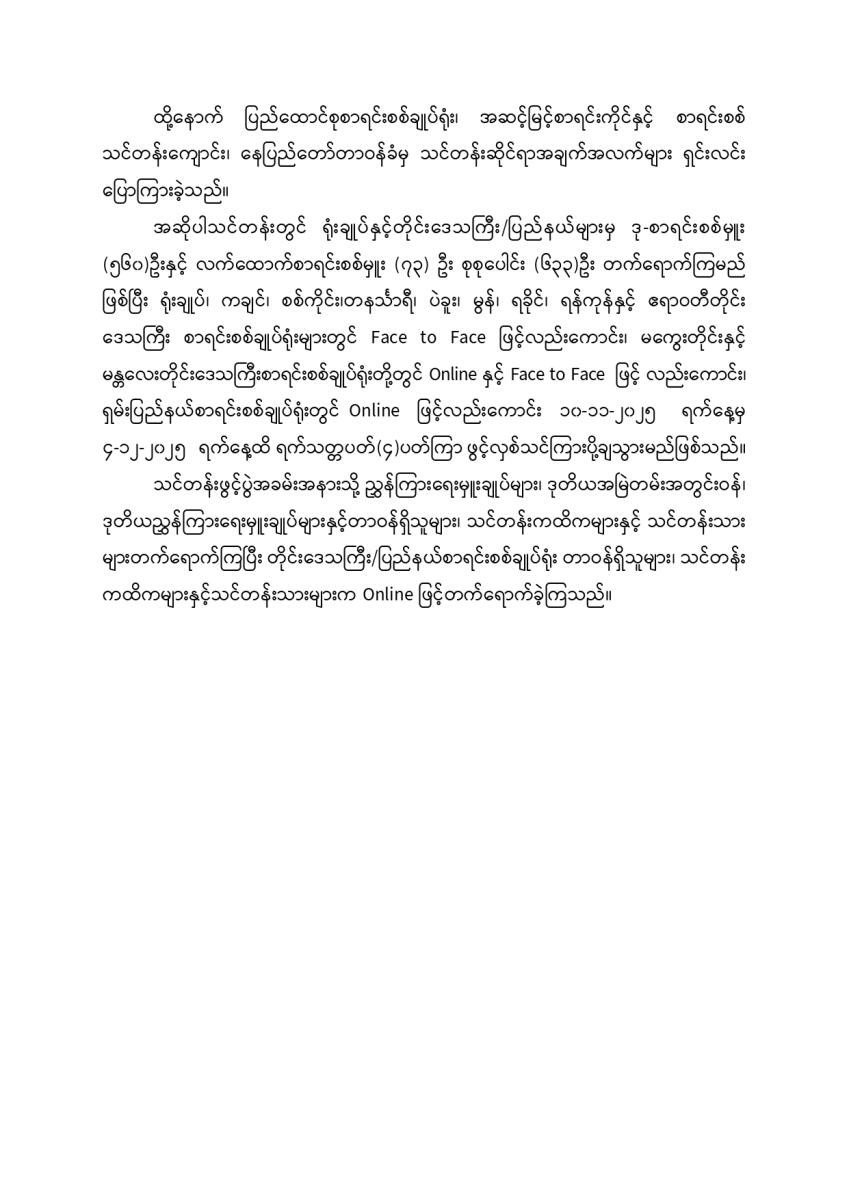 အမြဲတမ်းအတွင်းဝန် / ညွှန်ကြားရေးမှူးချုပ် (စီမံရေးရာဦးစီးဌာန/ နည်းပညာဖွံ့ဖြိုးရေးနှင့် လေ့ကျင့်ရေးဦးစီးဌာန)