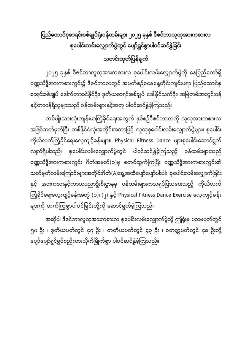 ပြည်ထောင်စုစာရင်းစစ်ချုပ်ရုံးဝန်ထမ်းများ ၂၀၂၅ ခုနှစ် ဒီဇင်ဘာလူထုအားကစားလ စုပေါင်းလမ်းလျှောက်ပွဲတွင် ပျော်ရွှင်စွာပါဝင်ဆင်နွှဲခြင်း