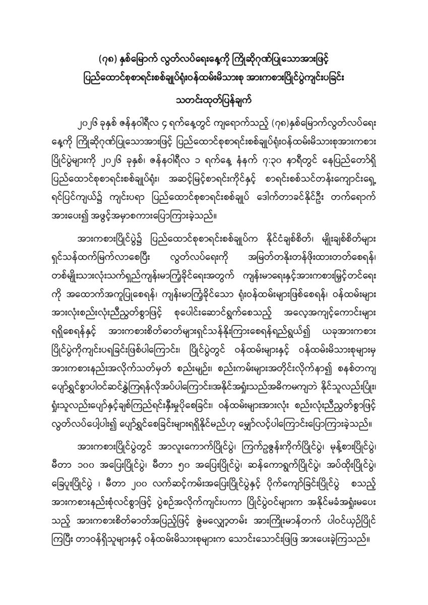 (၇၈) နှစ်မြောက် လွတ်လပ်ရေးနေ့ကို ကြိုဆိုဂုဏ်ပြုသောအားဖြင့် ပြည်ထောင်စုစာရင်းစစ်ချုပ်ရုံးဝန်ထမ်းမိသားစု အားကစားပြိုင်ပွဲကျင်းပခြင်း