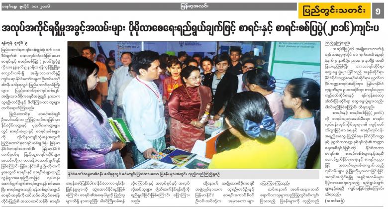 အလုပ်အကိုင်ရရှိမှု အခွင့်အလမ်းများ ပိုမိုလာစေရေး ရည်ရွယ်ချက်ဖြင့် စာရင်းနှင့်စာရင်းစစ်ပြပွဲ (၂၀၁၆) ကျင်းပ