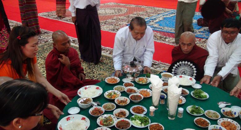 ၃။   ယင်းနောက် ပြည်ထောင်စုစာရင်းစစ်ချုပ်နှင့်တကွ ရုံးဝန်ထမ်းများသည် သံဃာတော် အရှင်သူမြတ်များထံမှ ငါးပါးသီလခံယူဆောက်တည်ကြပြီး အနုမောဒနာတရား နာယူ၍ ရေစက်သွန်းချအမျှဝေကြပြီးနောက် သံဃာတော်များအား နေ့ဆွမ်းဆက်ကပ် လှူဒါန်းကာ ရုံးဝန်ထမ်းများအား မုန့်ဟင်းခါးဖြင့် ဧည့်ခံကျွေးမွေးပါသည်။