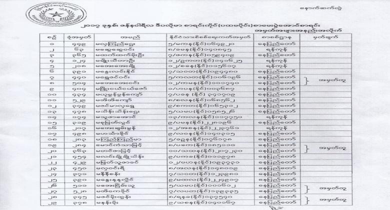 ဒီပလိုမာစာရင်းကိုင်(ပထမပိုင်း)သင်တန်းအောင်စာရင်းထုတ်ပြန်ခြင်း