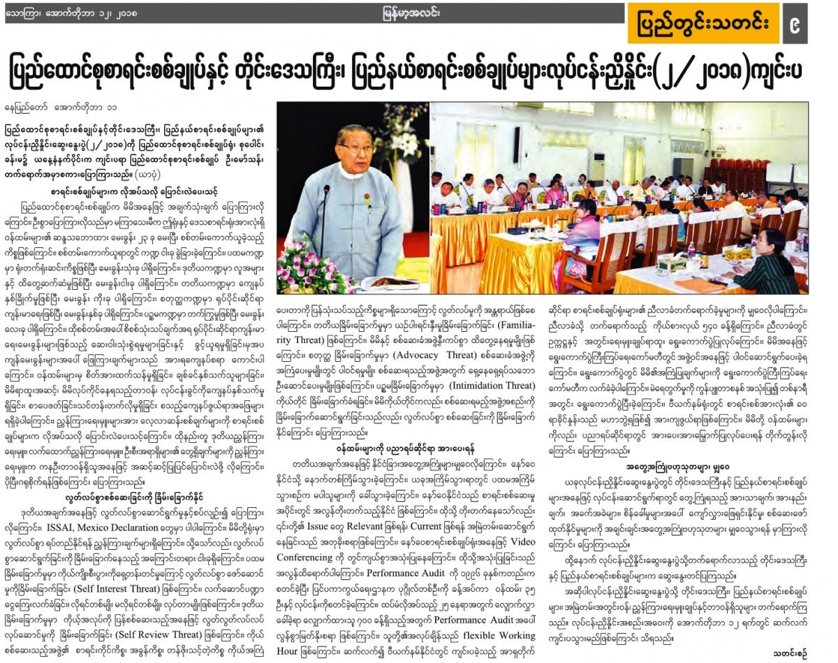 ပြည်ထောင်စုစာရင်းစစ်ချုပ်နှင့် တိုင်းဒေသကြီး၊ ပြည်နယ်စာရင်းစစ်ချုပ်များ လုပ်ငန်းညှိနှိုင်း (၂/၂၀၁၈) ကျင်းပ